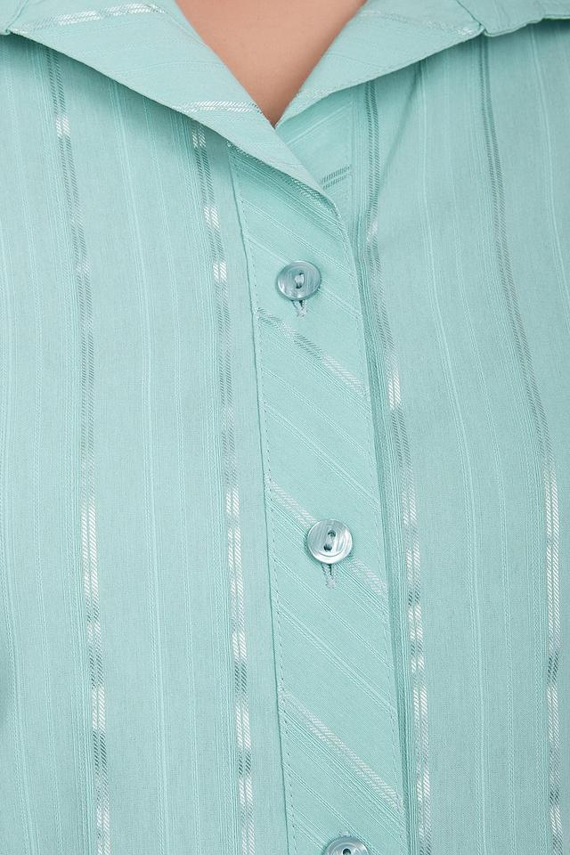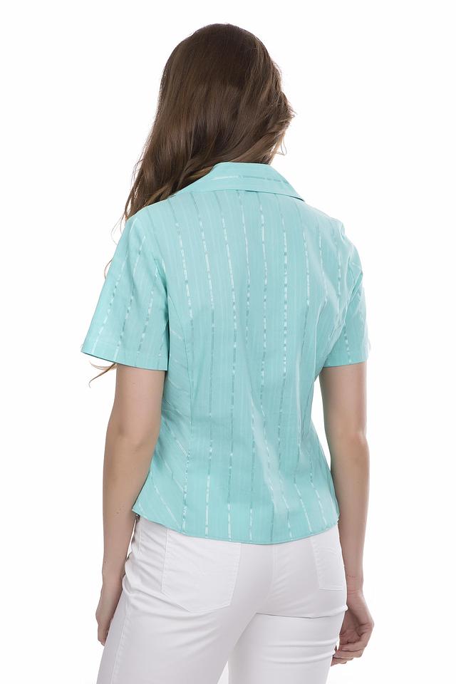 Модель имеет классический крой с короткими рукавами и отложным воротником. Застёжка на пуговицы обеспечивает удобство надевания и снятия. Блуза изготовлена из качественного смесового материала, состоящего из хлопка (62%), полиэстера (35%) и эластана (3%).