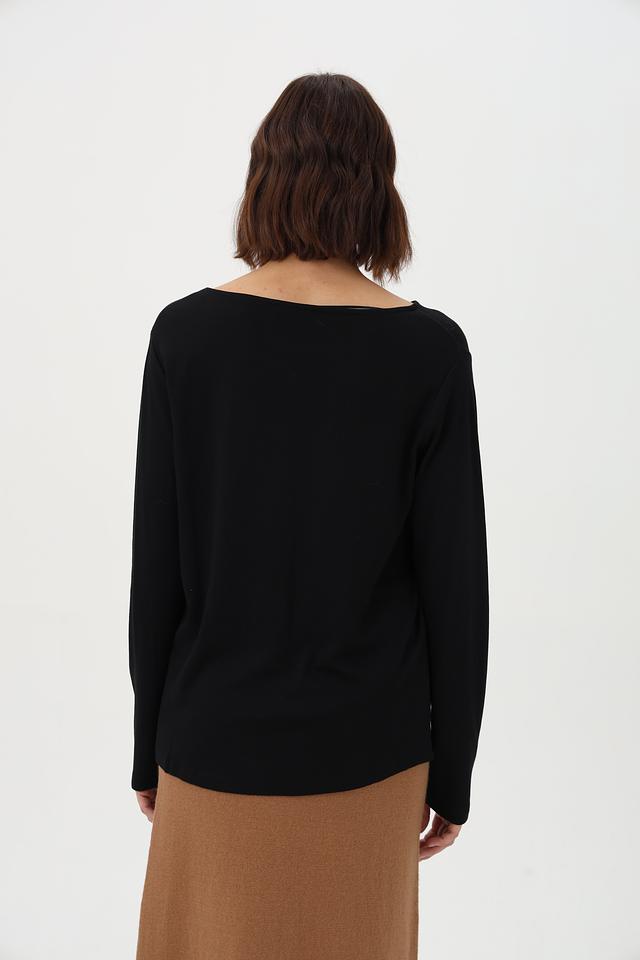 Элегантный чёрный лонгслив от бренда Steilmann станет отличным дополнением к вашему гардеробу. Модель выполнена из приятной к телу ткани, сочетающей в себе 50% хлопка и 50% модал, что обеспечивает комфорт в носке.