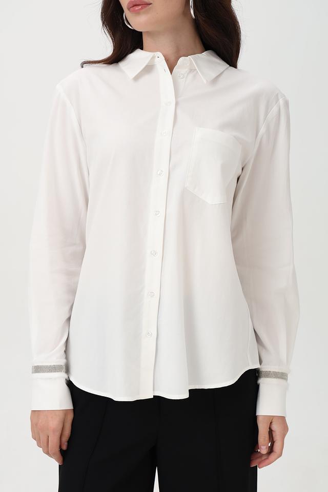 Белая рубашка Steilmann из хлопка и модала с длинным рукавом, декорированная серой полоской на манжетах. Классический крой и натуральный состав обеспечивают комфорт и элегантный вид. Состав: хлопок 50%, модал 50%