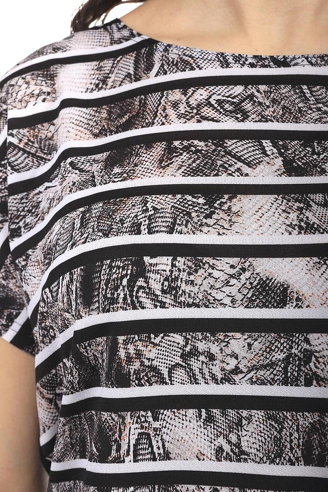 Блуза Steilmann чёрно-белого цвета с оригинальным полосатым принтом. Модель выполнена из мягкого и приятного к телу материала с добавлением эластана для комфортной посадки. Идеально подойдёт для создания повседневных образов. Состав: полиэстер 94%, эластан 6%