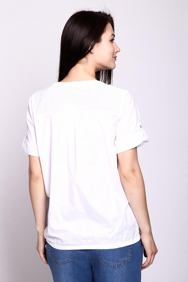 Короткие рукава с небольшими защипами и эластичная кулиска по низу создают комфортную посадку по фигуре. Блуза идеально сочетается с джинсами, брюками или юбками, позволяя создавать разнообразные стильные комплекты. Состав: 100% хлопок.