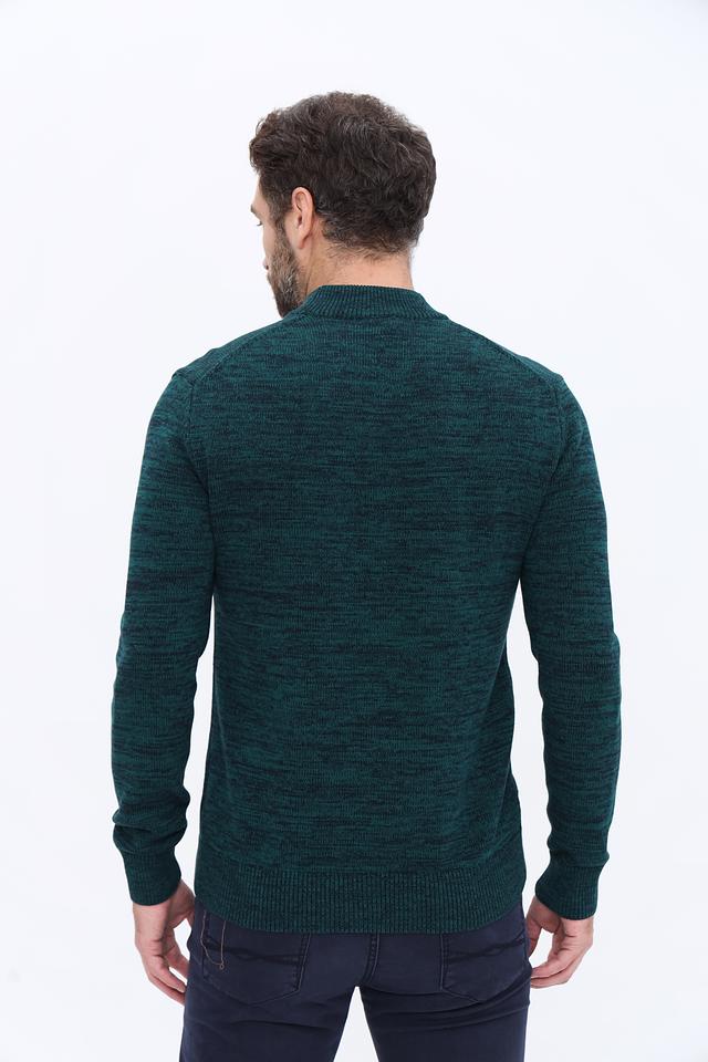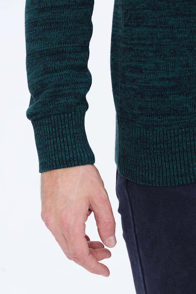 Изумрудный цвет пуловера выглядит благородно и элегантно, легко сочетается с другими элементами одежды. Он идеально подходит для создания как повседневных, так и более формальных образов. Этот пуловер станет незаменимой вещью в вашем гардеробе в холодное время года.