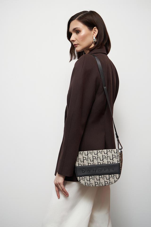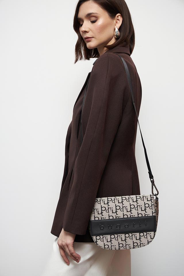 Сумка Bugatti – это сочетание элегантности и функциональности. Модель выполнена в чёрном цвете и украшена повторяющимся логотипом бренда по всей поверхности.
