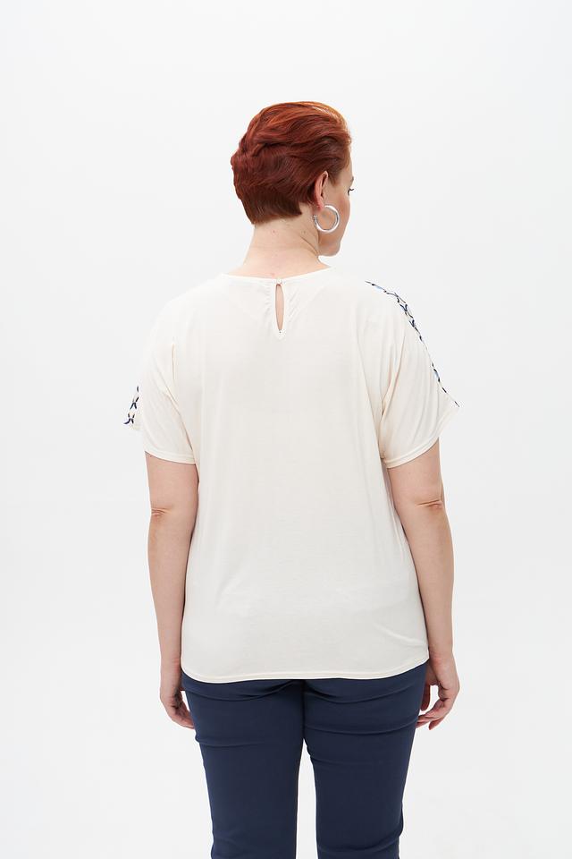 Блузка имеет свободный крой, который не сковывает движения и позволяет создать непринужденный образ. Короткие рукава делают ее идеальным выбором для теплой погоды.