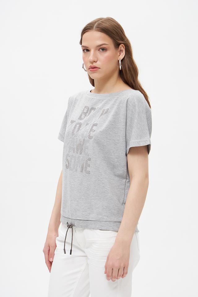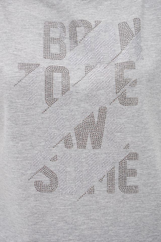 Женская футболка Suza серого цвета, украшенная стразами, выполнена из мягкого трикотажа. Состав: вискоза, полиамид, эластан. Состав: вискоза 60%, полиамид 35%, эластан 5%