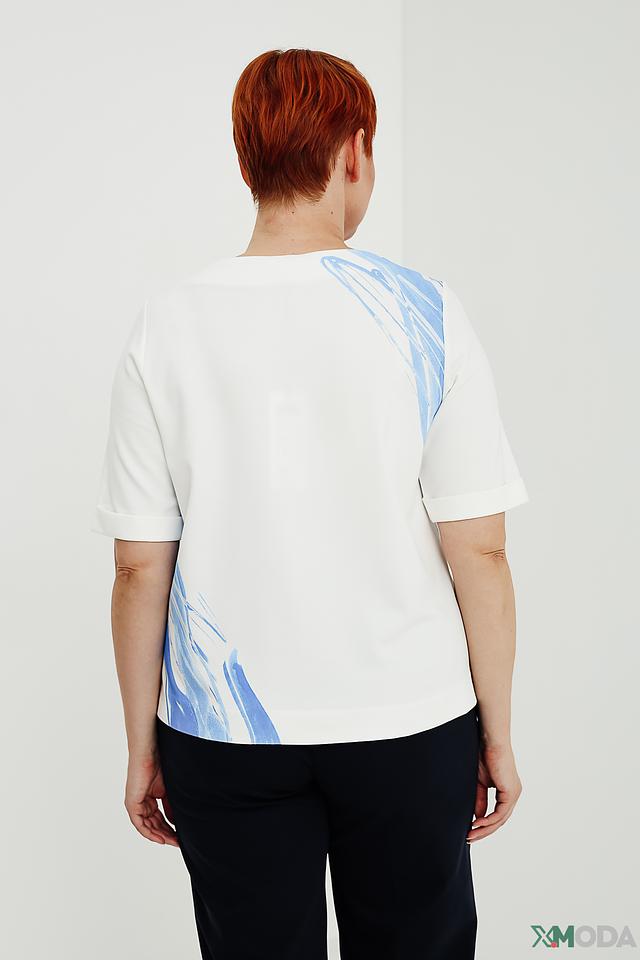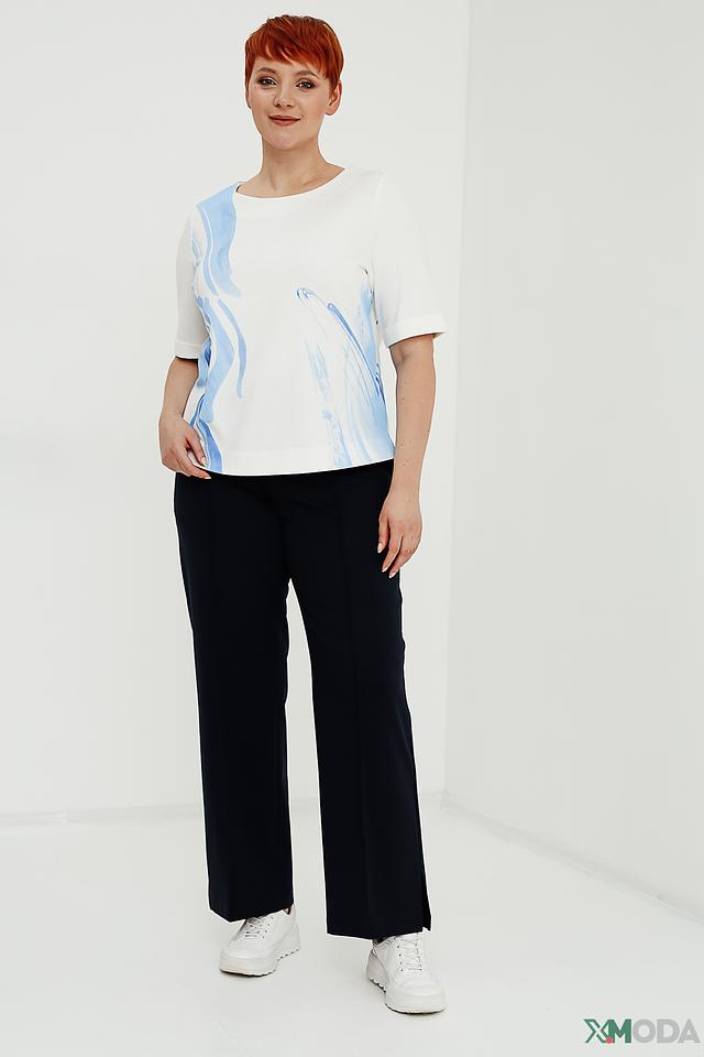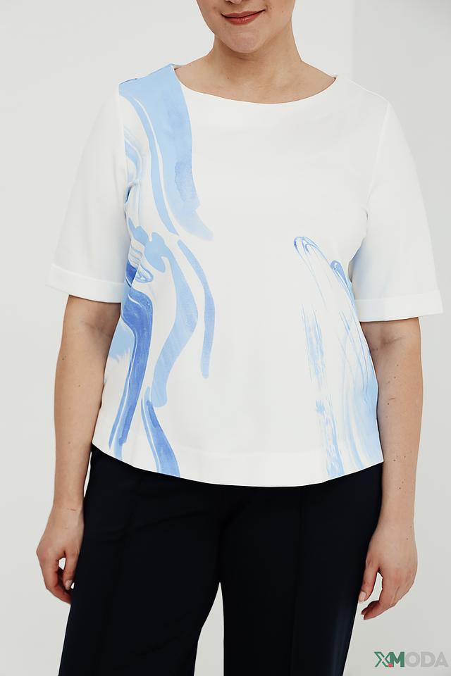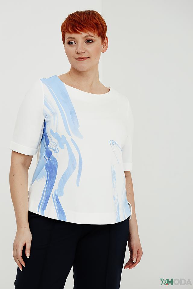 Женская футболка Taifun белого цвета с абстрактным голубым принтом. Модель выполнена из мягкой вискозы с добавлением полиамида и эластана, обеспечивающих комфорт и хорошую посадку по фигуре. Состав: вискоза 60%, полиамид 35%, эластан 5%