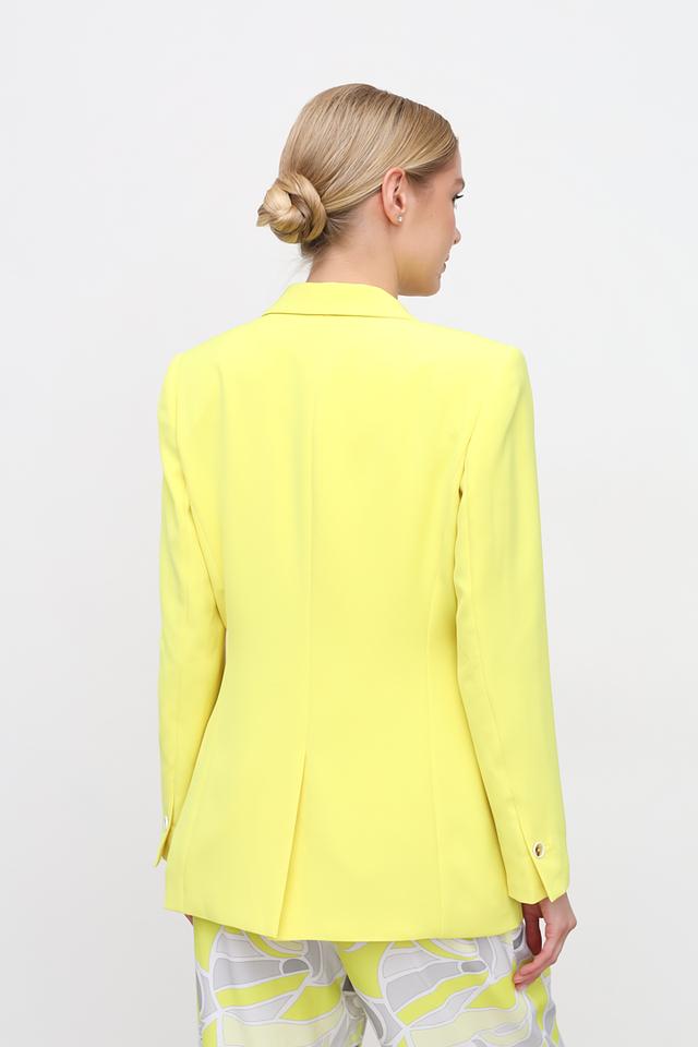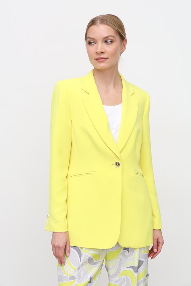 Жёлтый жакет Taifun – стильный выбор для создания яркого образа. Классический крой и однобортная застёжка на пуговицу делают этот жакет универсальным элементом гардероба. Состав: полиэстер 95%, эластан 5%