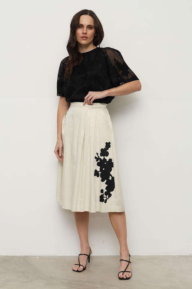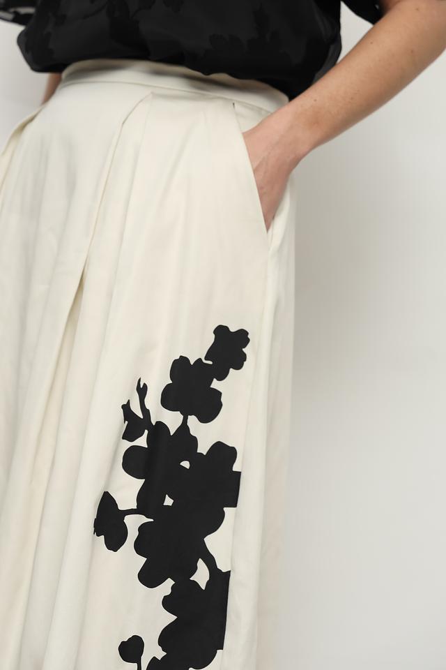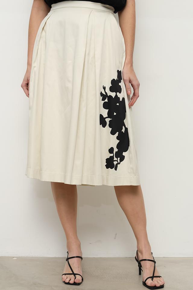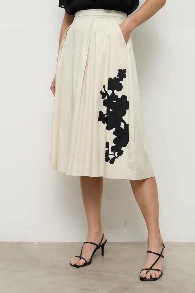 Эта юбка от Taifun станет прекрасным дополнением к вашему гардеробу. Выполнена в приятном кремовом цвете и украшена эффектным чёрным цветочным принтом, который придает ей особый шарм.