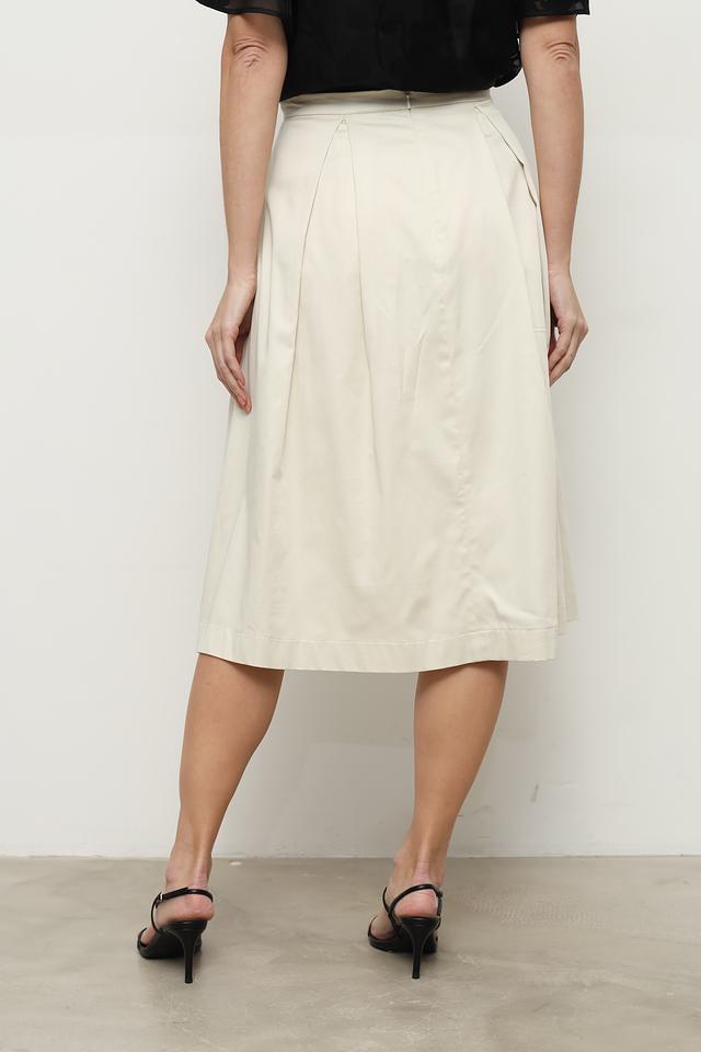 Юбка имеет классический крой и длину миди, что делает ее универсальной для различных случаев. Изготовлена из высококачественного хлопка с добавлением эластана (98% хлопок, 2% эластан), благодаря чему она приятна к телу, хорошо держит форму и обеспечивает комфорт в носке.