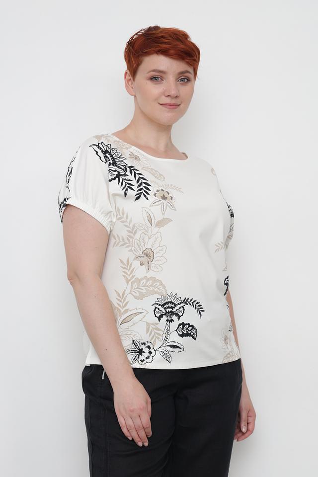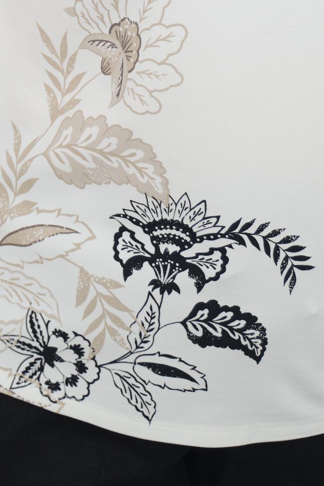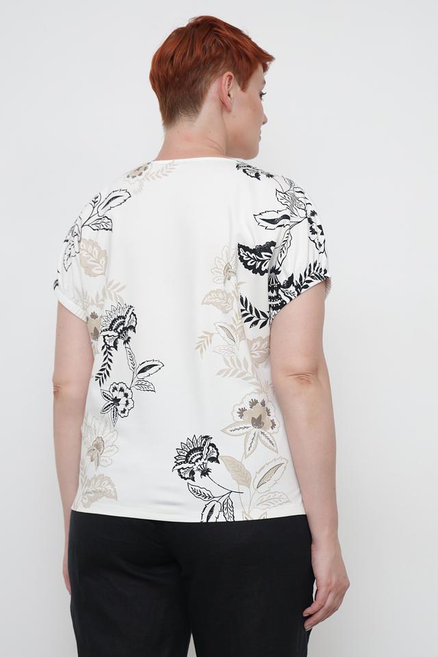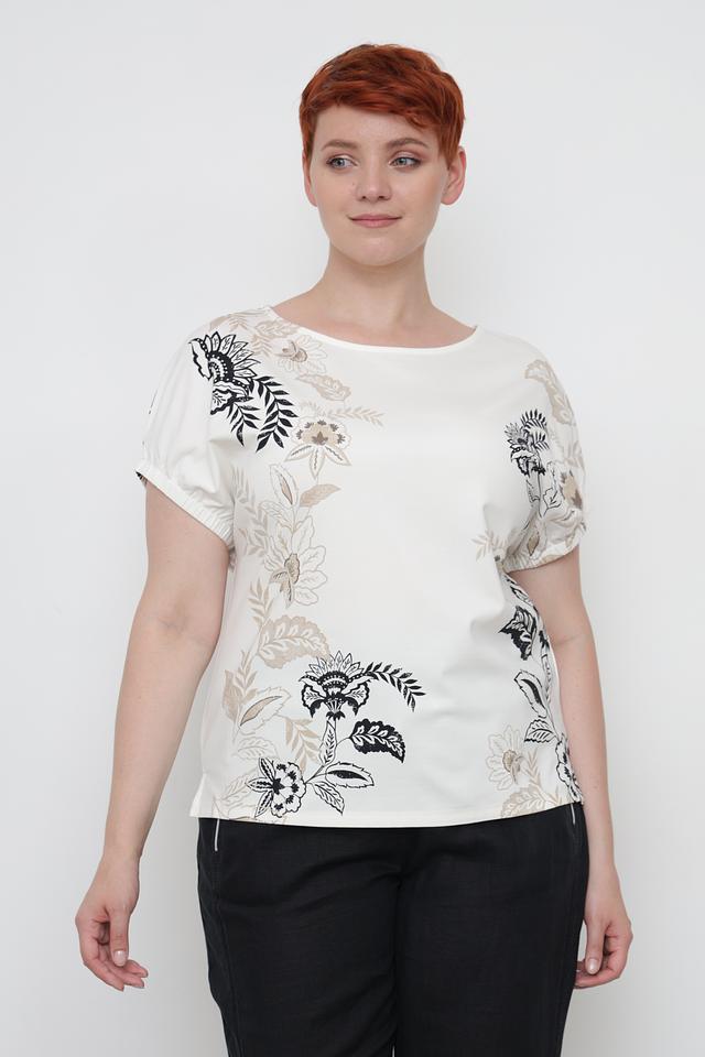 Блуза Taifun кремового цвета с цветочным принтом станет отличным дополнением к вашему гардеробу. Модель выполнена из мягкой и приятной к телу ткани, имеет короткий рукав и округлый вырез горловины. Состав: вискоза 60%, полиамид 35%, эластан 5%