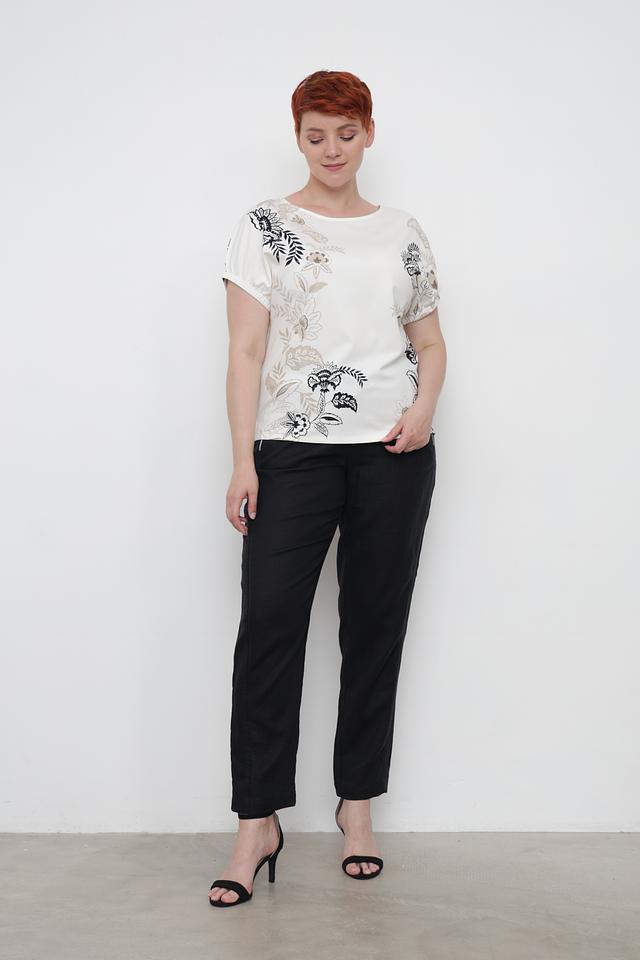 Короткий рукав и округлый вырез горловины делают эту блузу универсальной и подходящей для различных случаев. Она отлично сочетается с брюками, юбками и джинсами, позволяя создавать разнообразные образы.