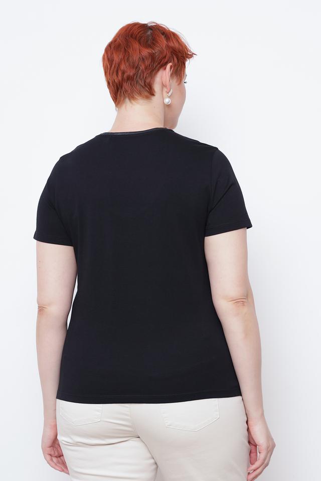 Классический крой футболки обеспечивает свободу движений и подходит для любого типа фигуры. Черный цвет делает ее универсальной и легко сочетаемой с другими элементами одежды.