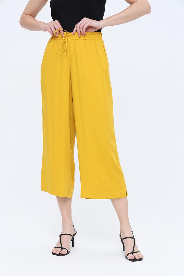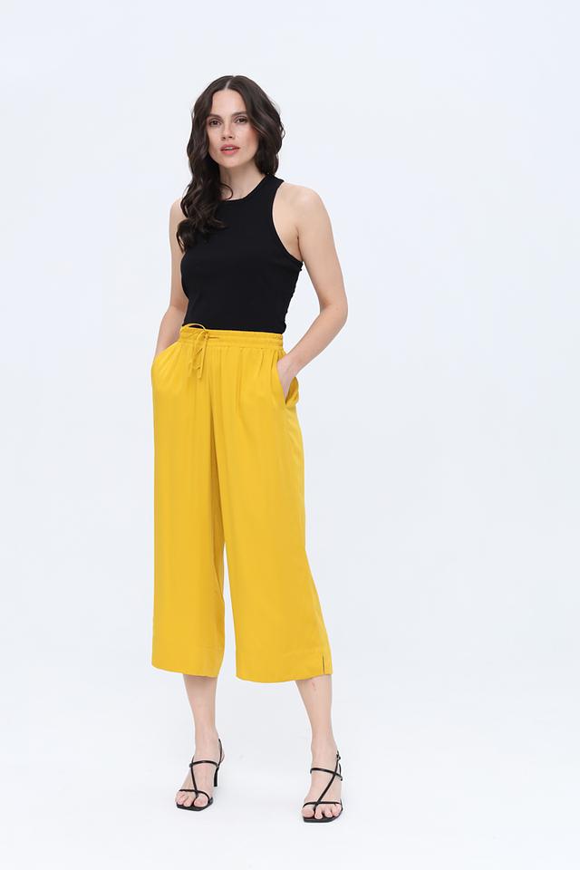 Женские брюки-кюлоты Taifun горчичного цвета – стильное и комфортное решение для создания модных образов. Модель выполнена из мягкой вискозы, имеет завышенную талию и удобный пояс на завязках. Состав: вискоза 100%