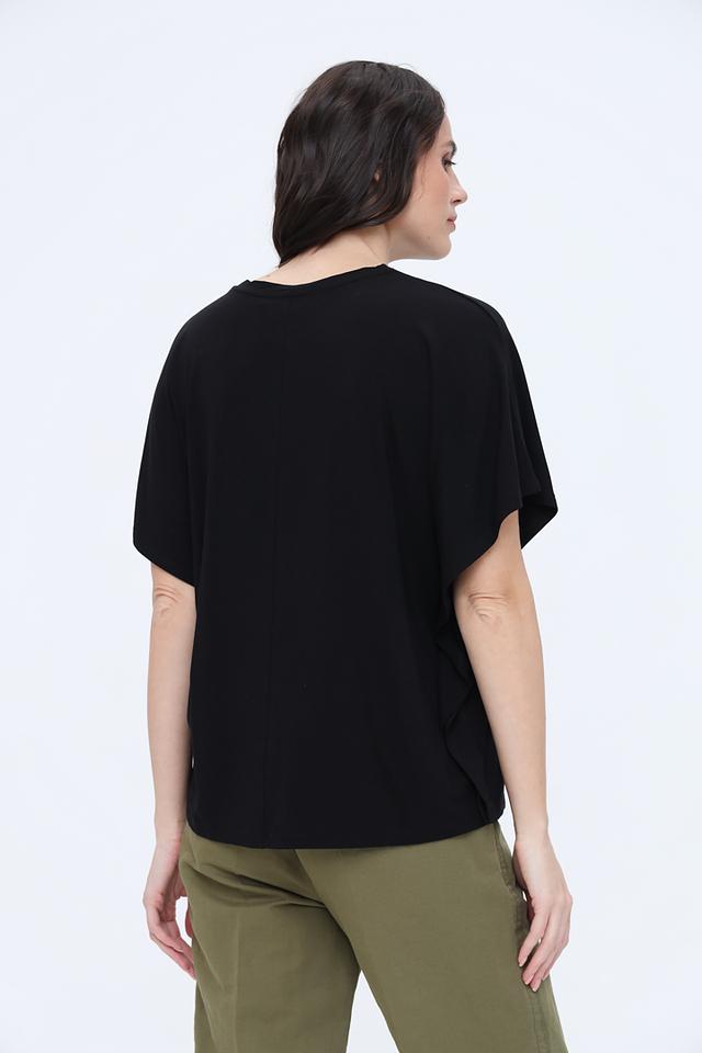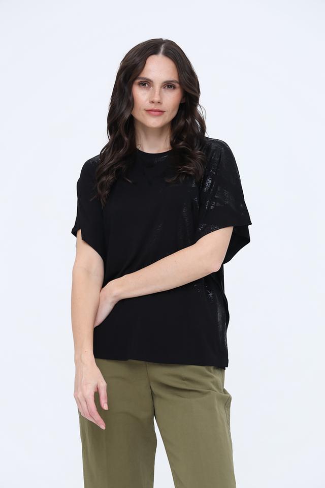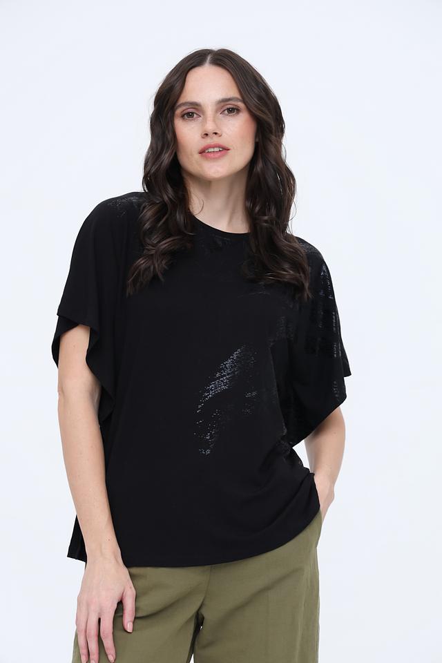 Модель имеет свободный крой и короткие рукава, что обеспечивает комфорт в жаркую погоду. Футболка изготовлена из высококачественной вискозы с добавлением эластана, благодаря чему она приятна к телу, хорошо драпируется и не мнется.