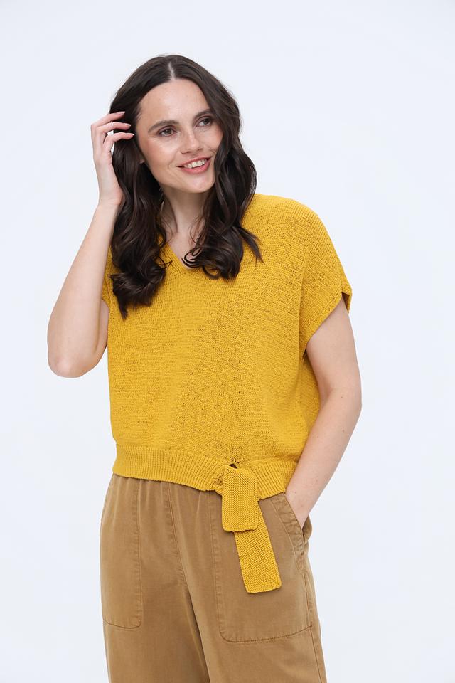 Женский пуловер Taifun горчичного цвета – это стильная и удобная модель с короткими рукавами и акцентным поясом-завязкой. Изготовлен из мягкого хлопка с добавлением полиамида для сохранения формы. Идеальный выбор для создания модных образов. Состав: хлопок 75%, полиамид 25%