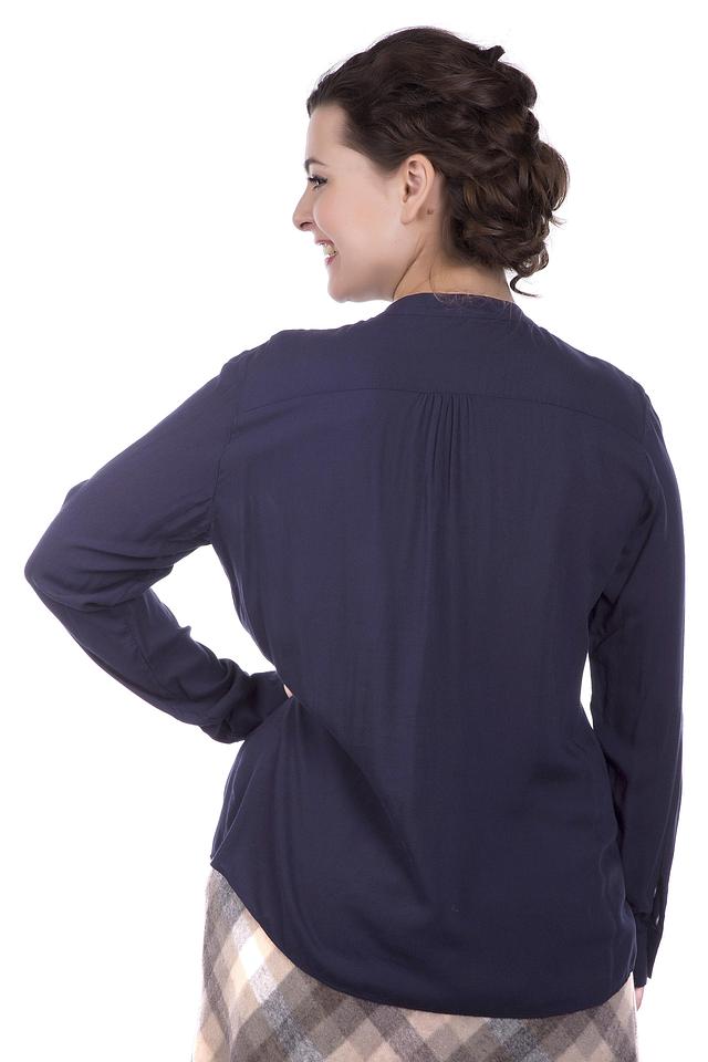 - Универсальность: Глубокий синий цвет и элегантный стиль делают эту блузу идеальной основой для деловых, повседневных и вечерних ансамблей.