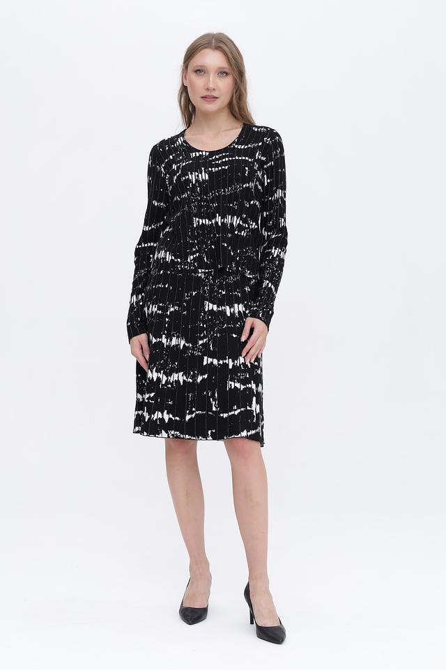 Этот стильный пуловер от Taifun выполнен в чёрном цвете и украшен выразительным белым принтом. Модель имеет круглый вырез горловины и длинные рукава, что делает её универсальной для создания различных образов.