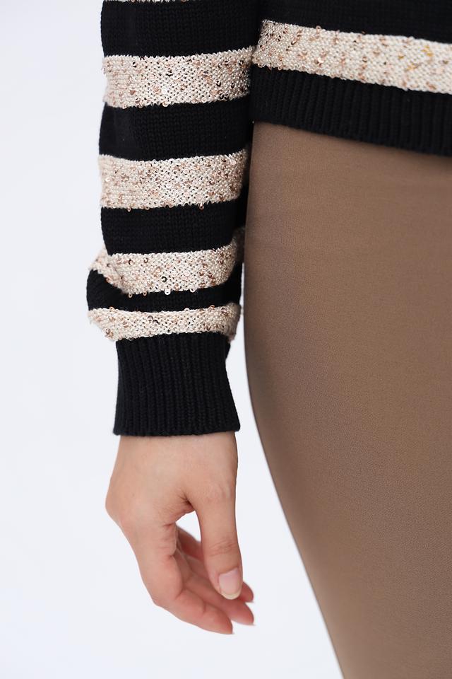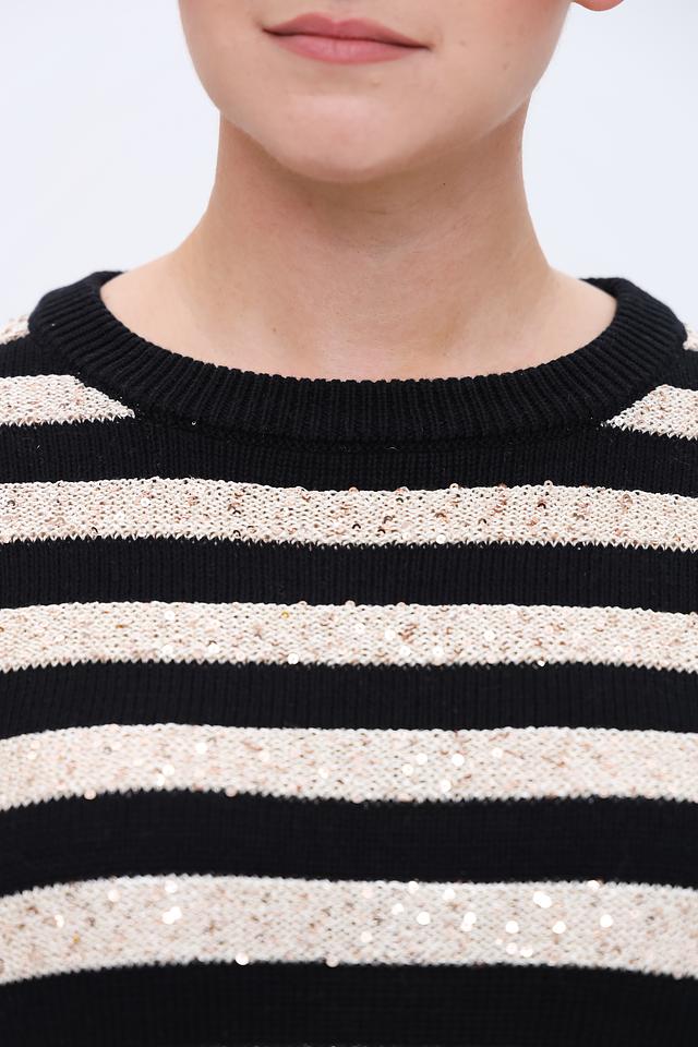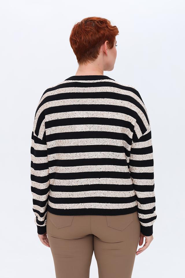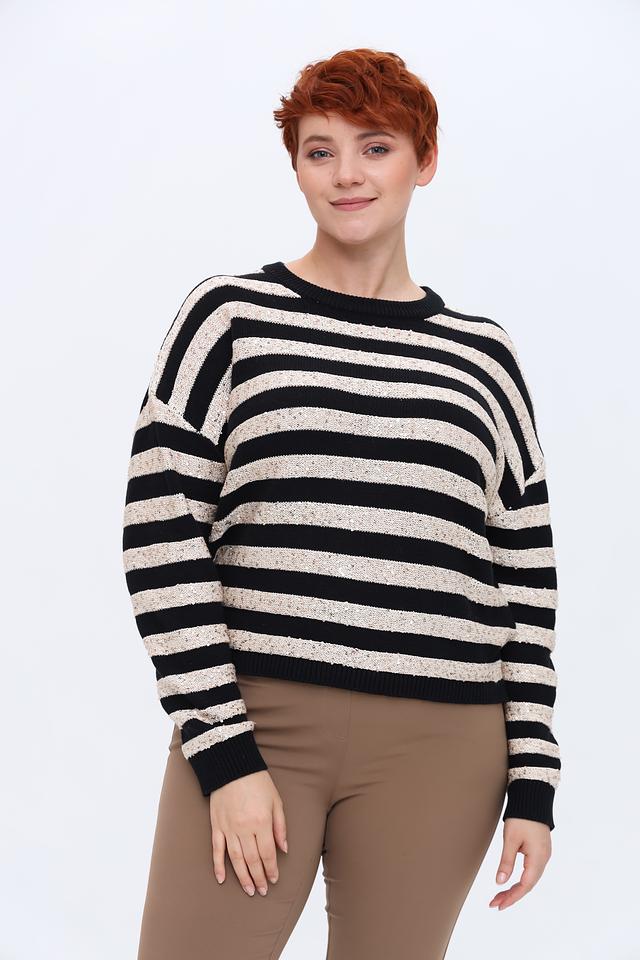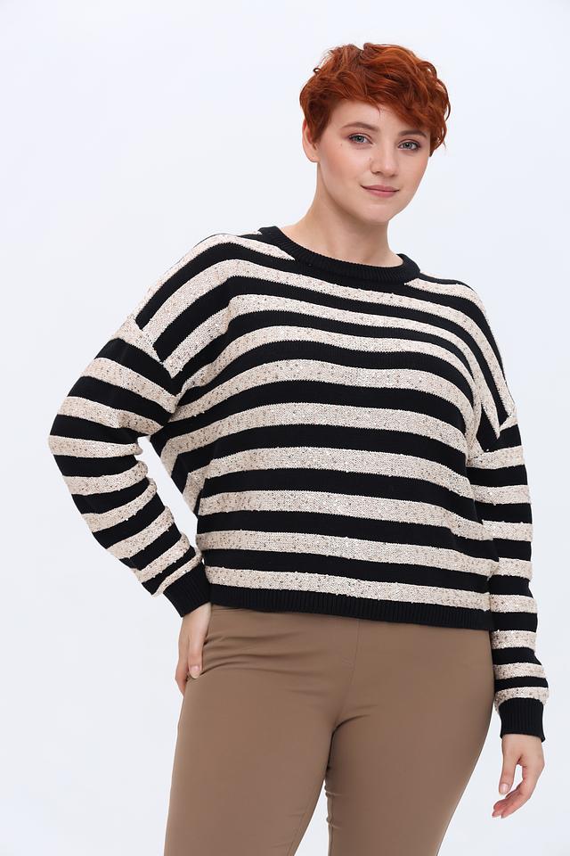 Женский пуловер Taifun чёрно-бежевого цвета с полосатым узором станет отличным дополнением к вашему гардеробу. Изготовлен из мягкого и приятного к телу хлопка с добавлением полиэстера, обеспечивающего форму и износостойкость. Состав: хлопок органич. 65%, полиэстер 35%