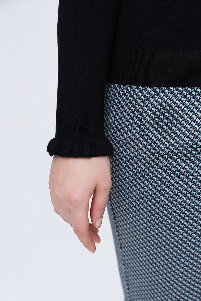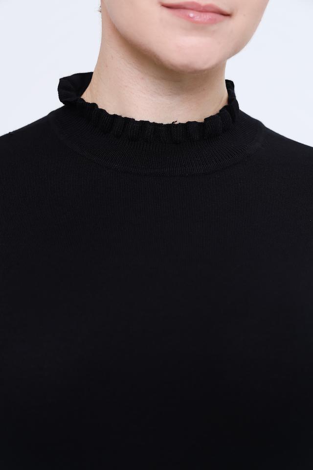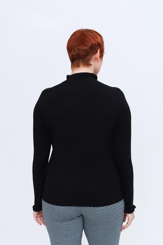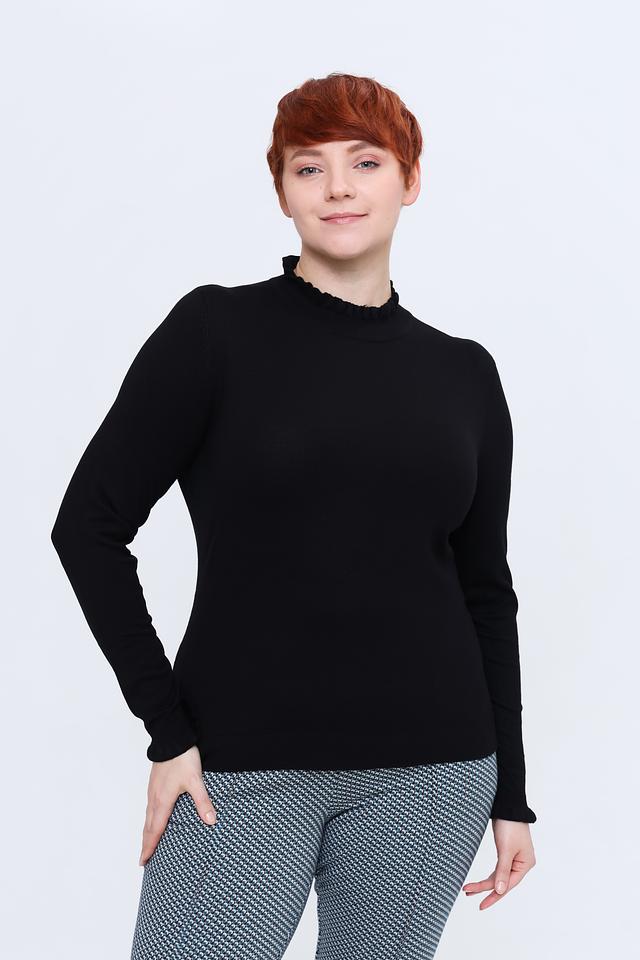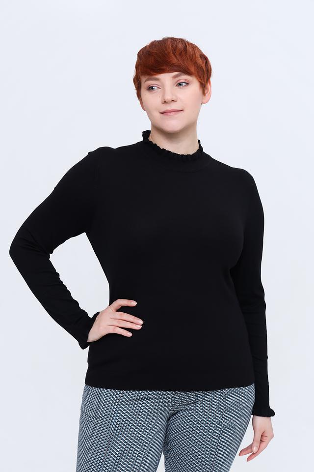 Пуловер имеет воротник-стойку с небольшими складками, что придает ему изысканность. Длинные рукава обеспечивают комфорт в прохладную погоду. Изготовлен из высококачественной вискозы (80%) с добавлением полиамида (20%), что делает его приятным к телу, мягким и износостойким.
