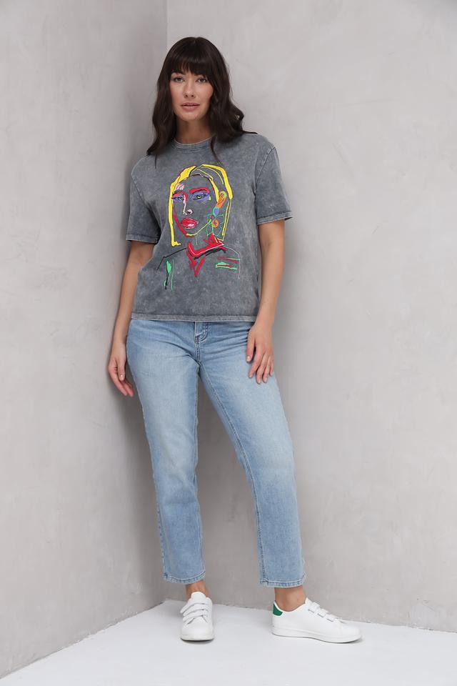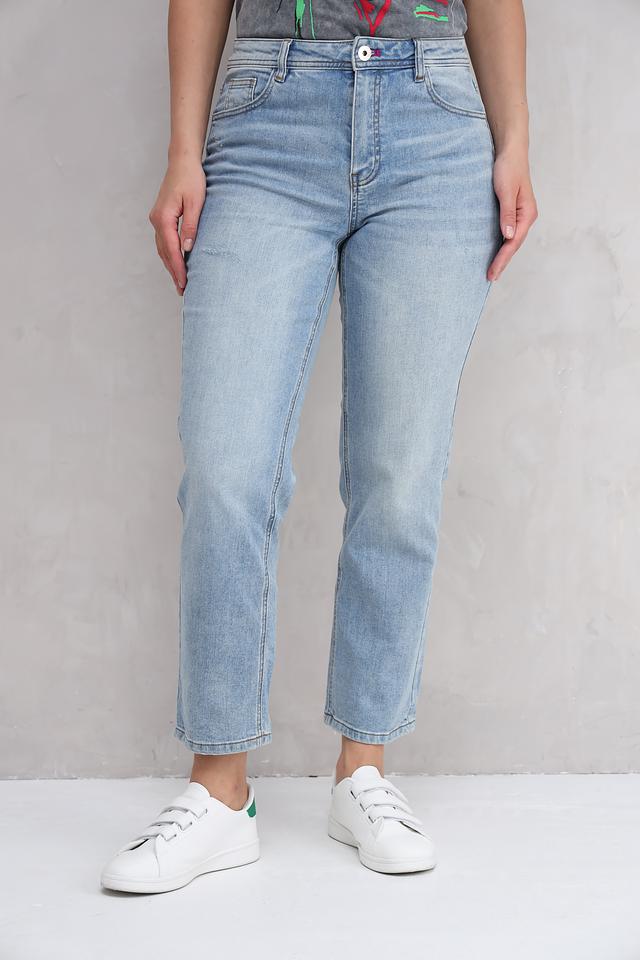 Особенностью модели является вышивка в виде ярких цветов на заднем кармане, которая добавляет оригинальности и женственности. Джинсы имеют классический прямой крой и высокую посадку, подчеркивающую талию.