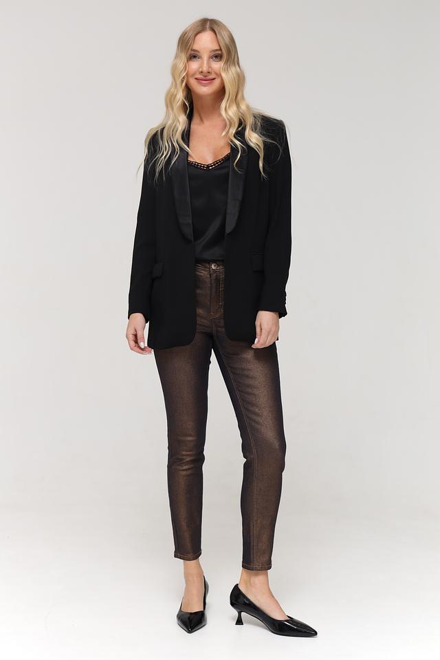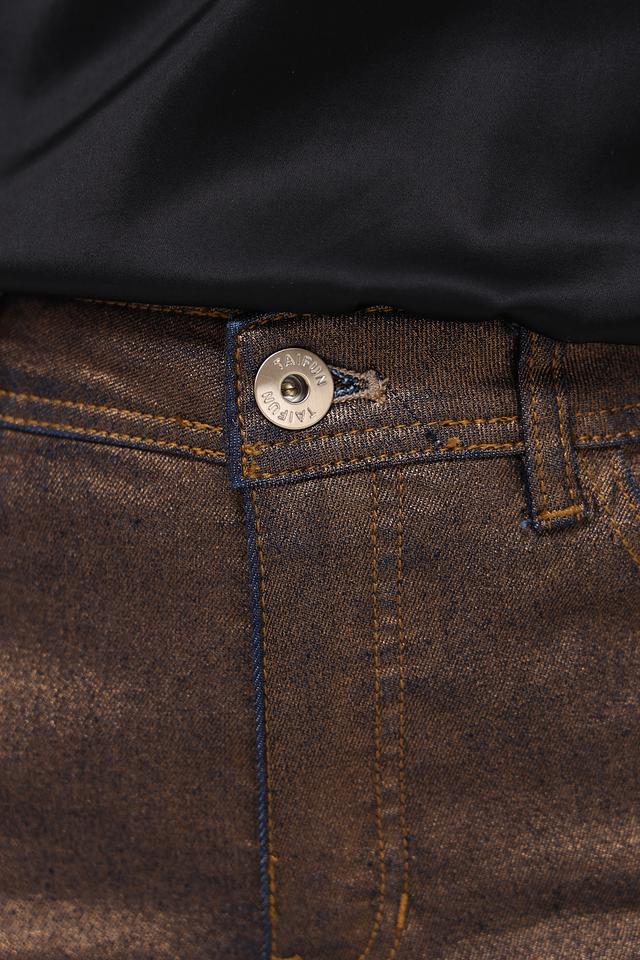 Эти стильные джинсы от Taifun станут ярким акцентом вашего образа. Модель выполнена в необычном бронзовом цвете с эффектом металлизированного блеска, что придает ей особый шарм.
