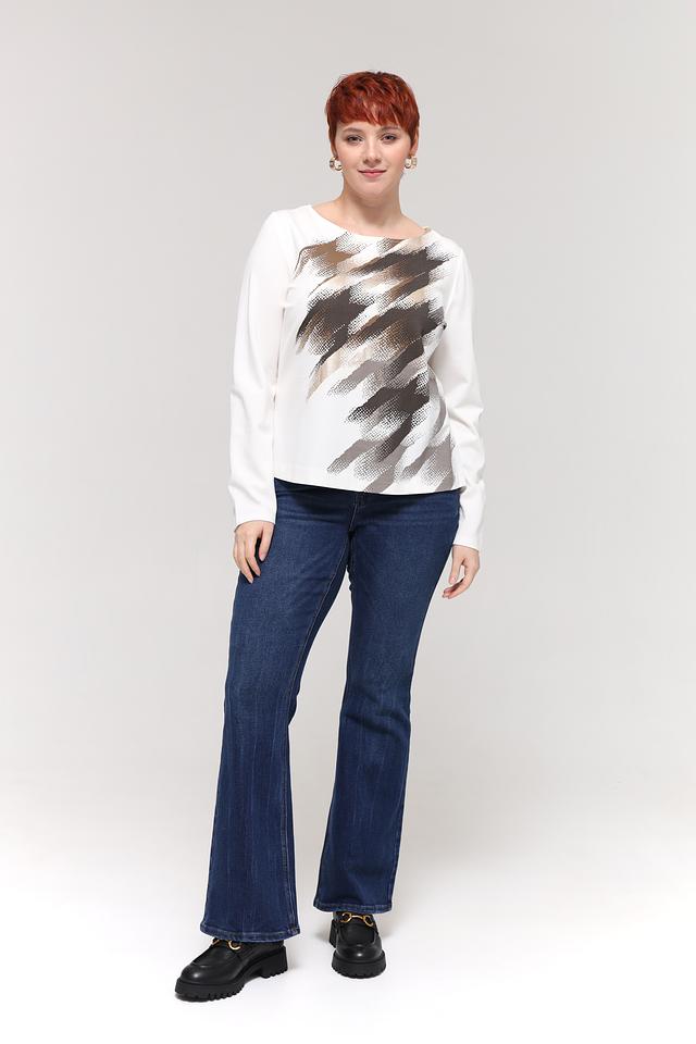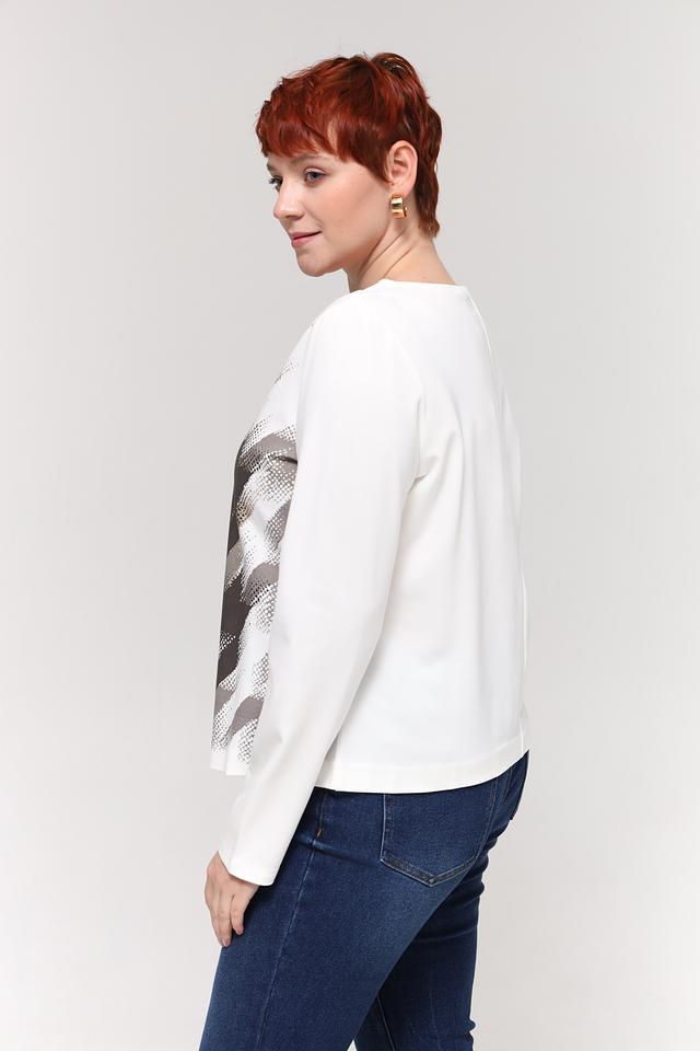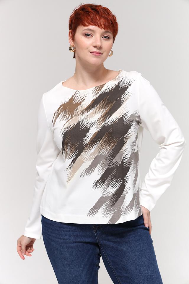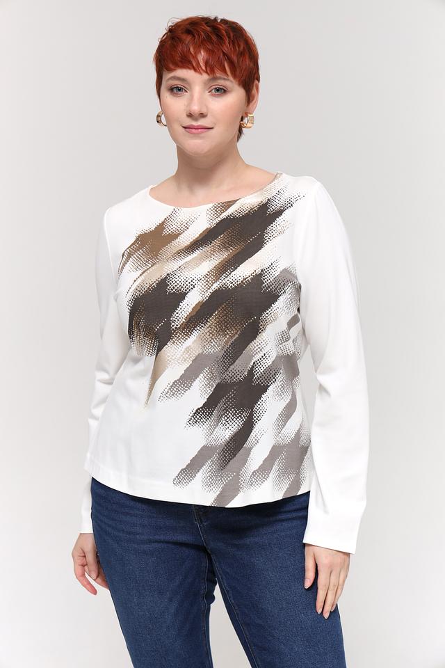 Женская футболка Taifun белого цвета с оригинальным абстрактным принтом. Изготовлена из мягкой вискозы с добавлением полиамида и эластана для комфорта и хорошей посадки. Состав: вискоза 60%, полиамид 35%, эластан 5%