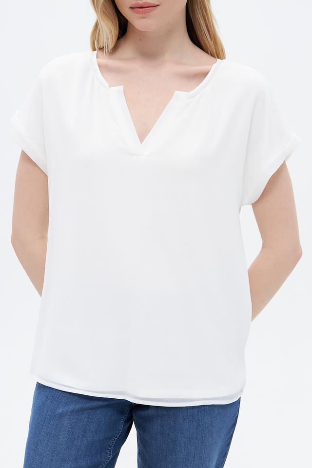 Белая футболка Taifun с короткими рукавами и V-образным вырезом. Изготовлена из мягкой вискозы с добавлением эластана для комфорта и лучшей посадки. Состав: вискоза 92%, эластан 8%