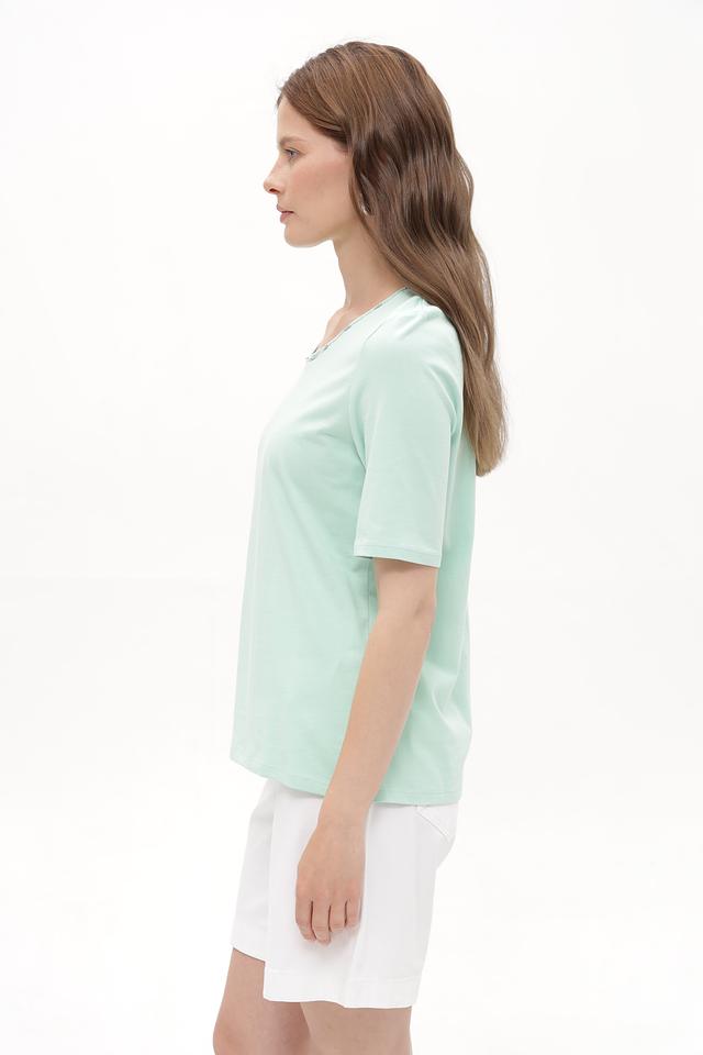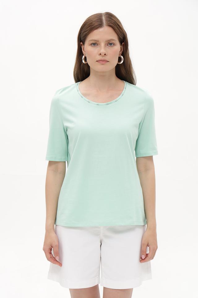 Представляем вам базовую футболку от бренда Taifun, выполненную в нежном мятном оттенке. Эта модель станет отличным дополнением к вашему летнему гардеробу.