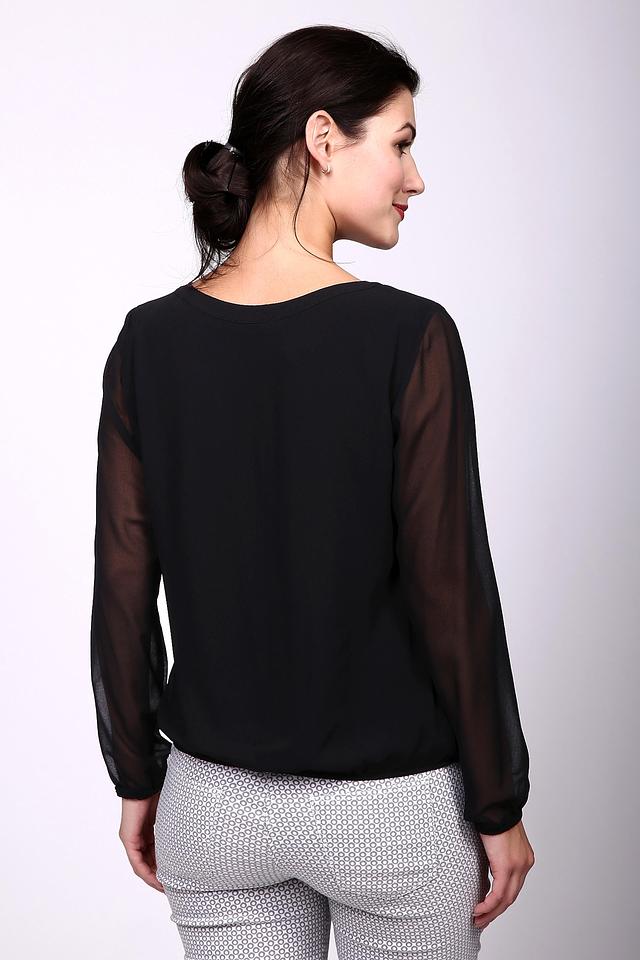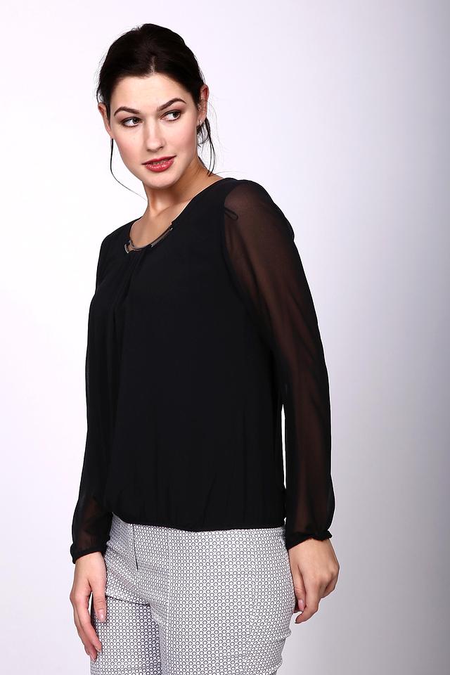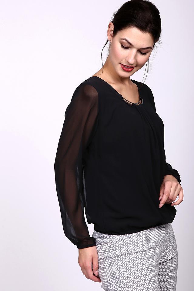 Чёрная блуза от Taifun с длинными рукавами-фонариками и округлым вырезом. Модель выполнена из лёгкой ткани и дополнена декоративной деталью у горловины, что придает ей элегантный вид. Состав: полиэстер 100%