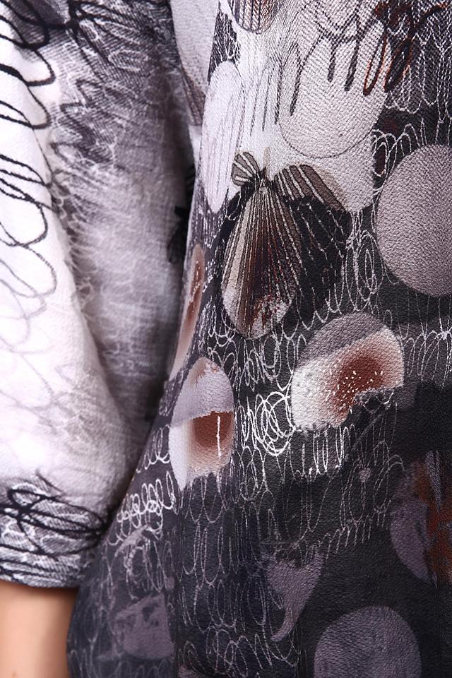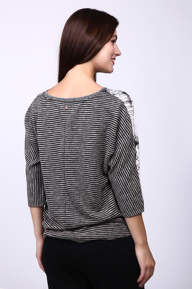 Блуза имеет удобный крой, который не сковывает движения. Рукава длиной 3/4 делают ее подходящей для любого времени года. Округлый вырез горловины подчеркивает женственность силуэта.