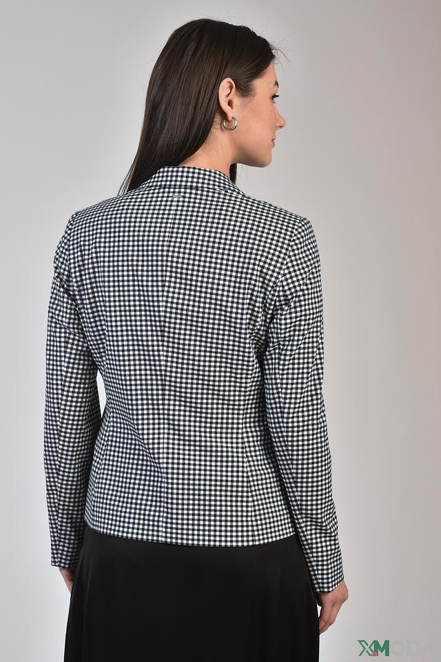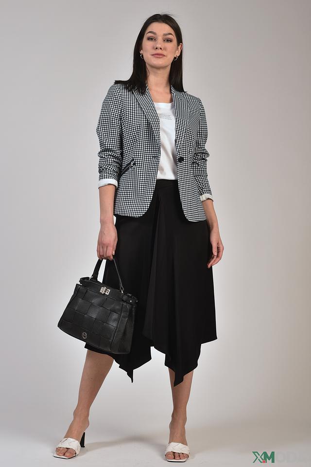 Этот жакет от Taifun станет незаменимой частью вашего гардероба. Выполненный в классическую чёрно-белую клетку, он легко сочетается с различными предметами одежды, позволяя создавать разнообразные образы.