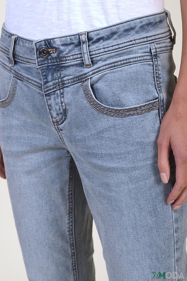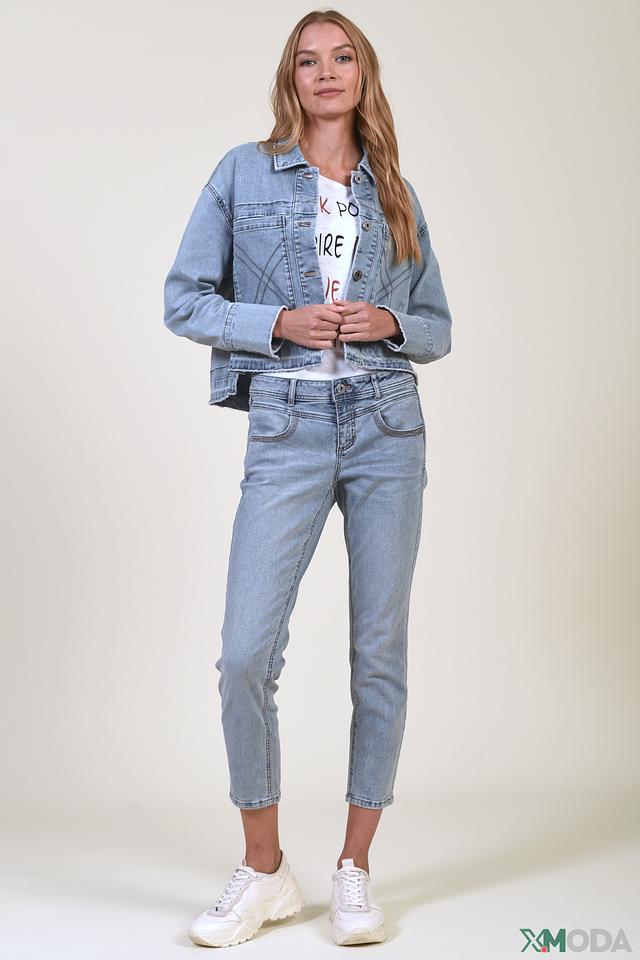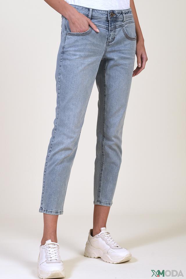 Голубые джинсы Taifun в стиле casual с эффектом потертостей и завышенной талией. Модель выполнена из качественного хлопка с добавлением полиэстера и эластана для комфорта и износостойкости. Состав: хлопок 71%, полиэстер 25%, эластан 2%, вискоза 2%