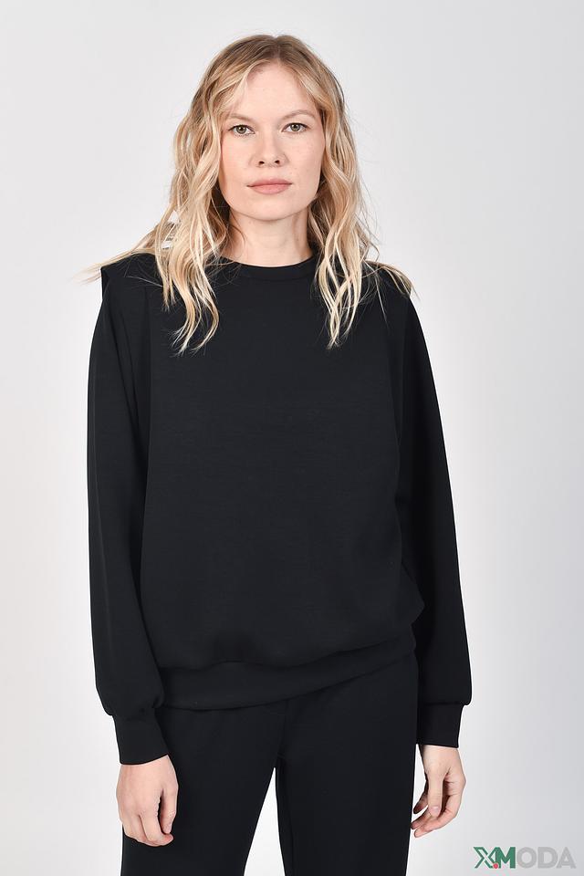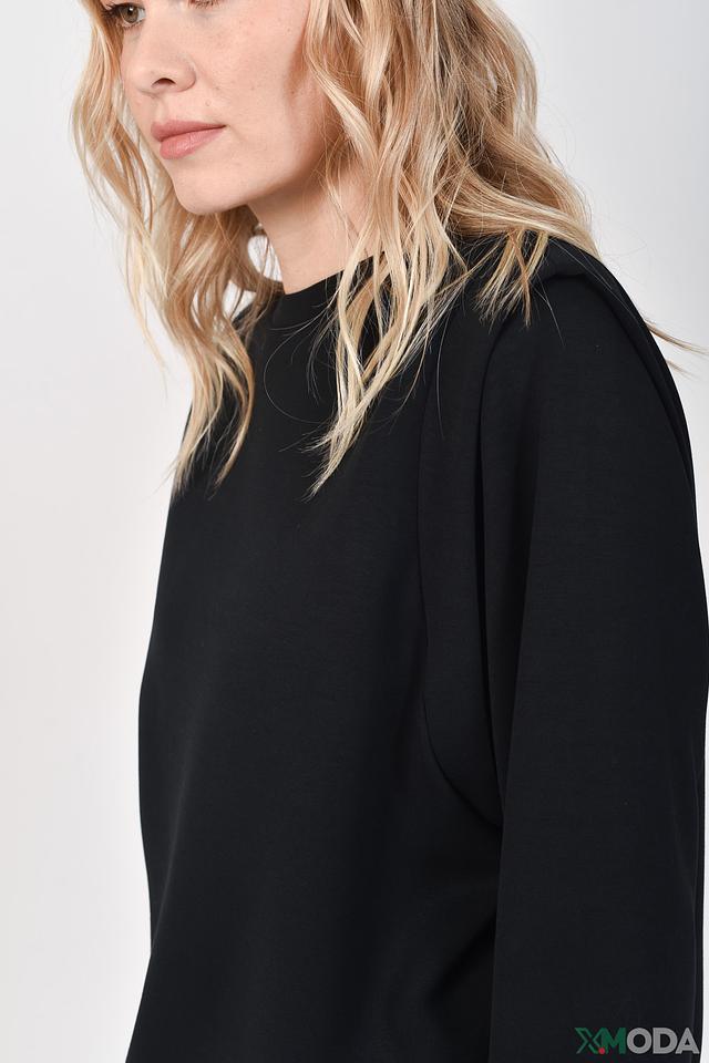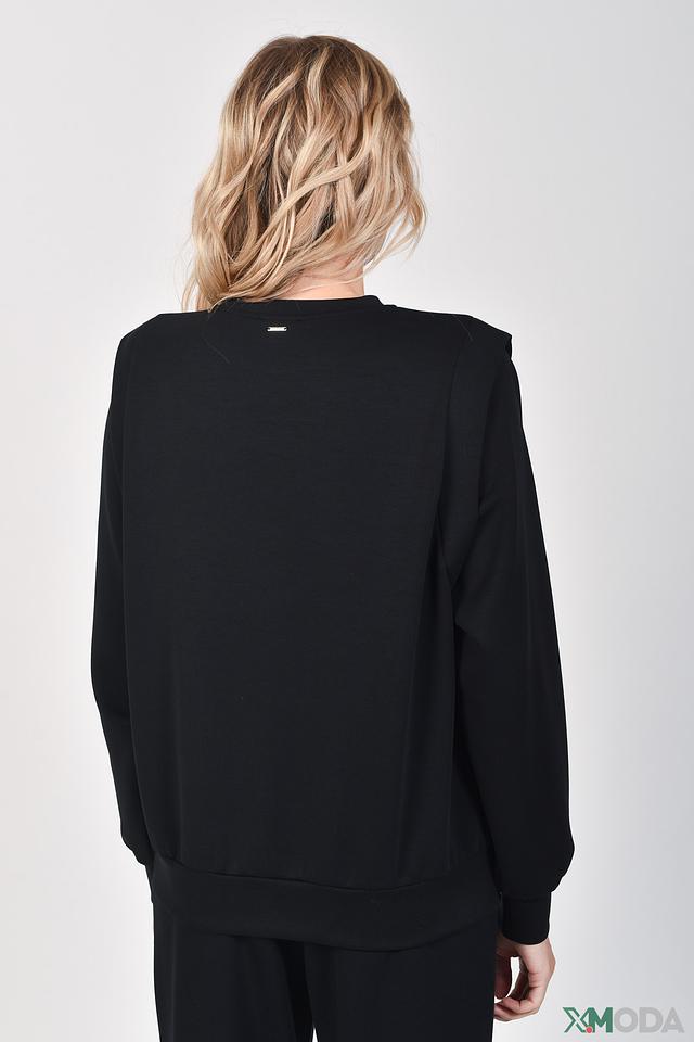 Пуловер имеет прямой крой и круглый вырез горловины. Особый акцент сделан на плечи, что придает модели современный и стильный вид. Длинные рукава и эластичные манжеты обеспечивают удобство и свободу движений.