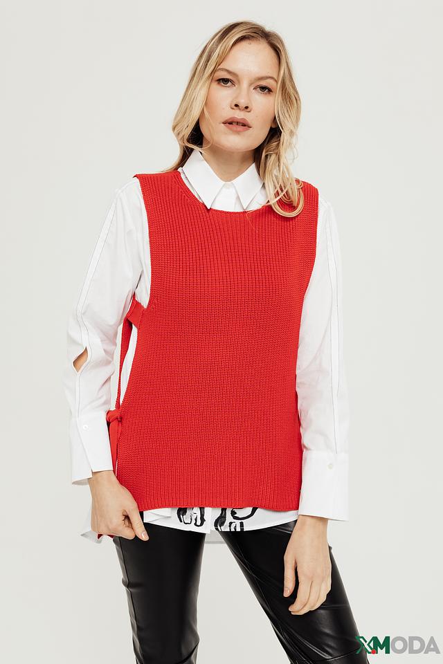 Красный вязаный жилет Taifun – стильная и удобная модель для создания многослойных образов. Изготовлен из 100% хлопка, имеет боковые завязки для регулировки силуэта и акцентный вязаный узор. Состав: хлопок 100%