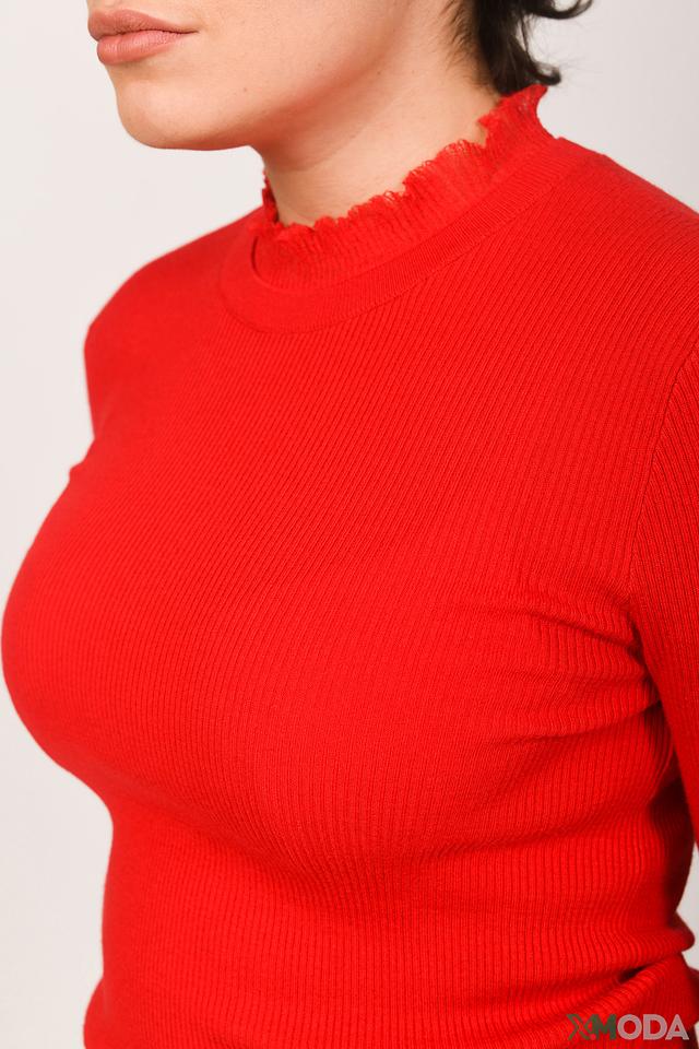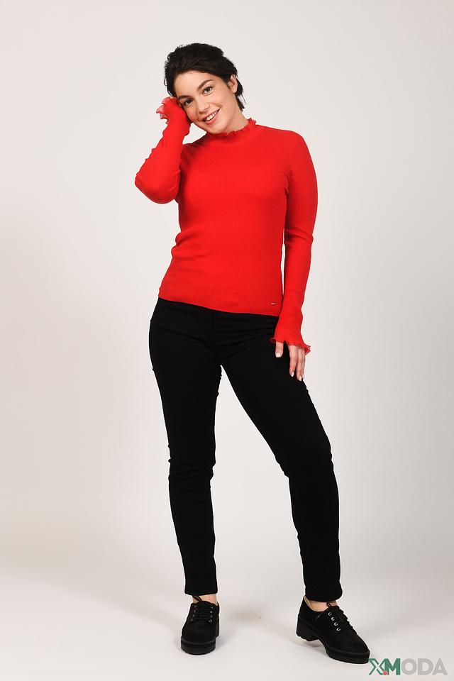Яркий красный цвет пуловера делает его акцентным элементом гардероба. Он прекрасно сочетается с джинсами, брюками или юбками.