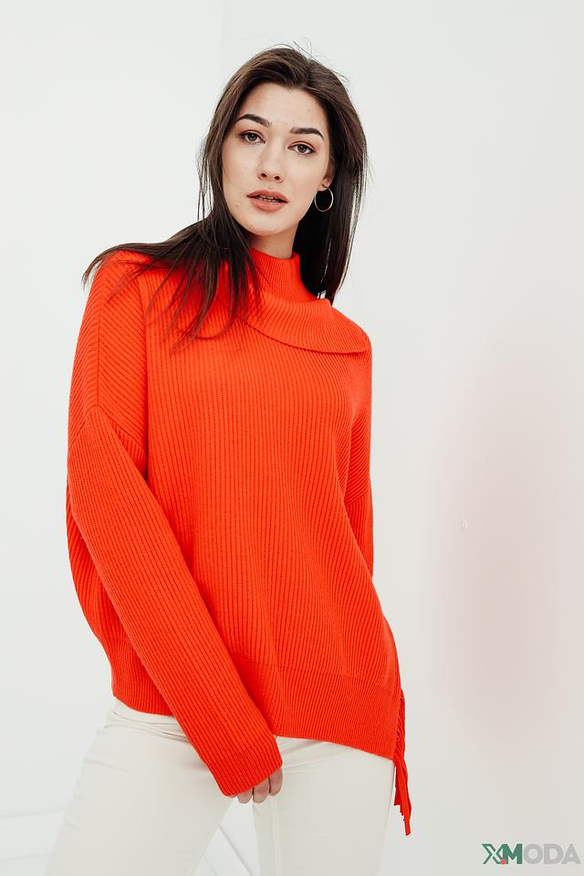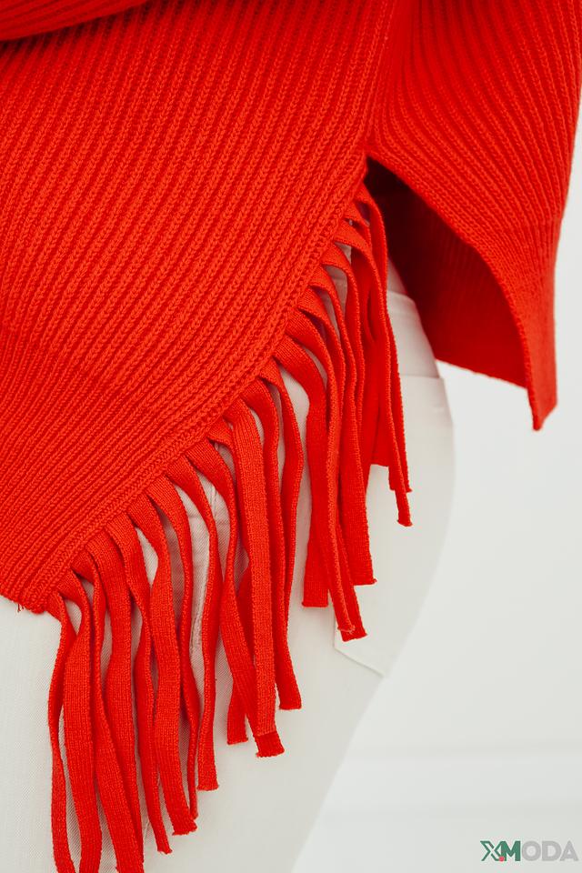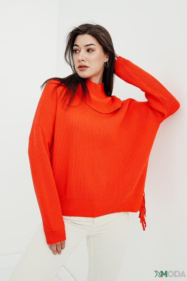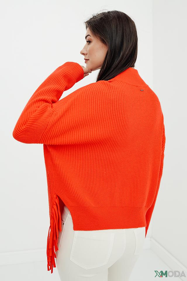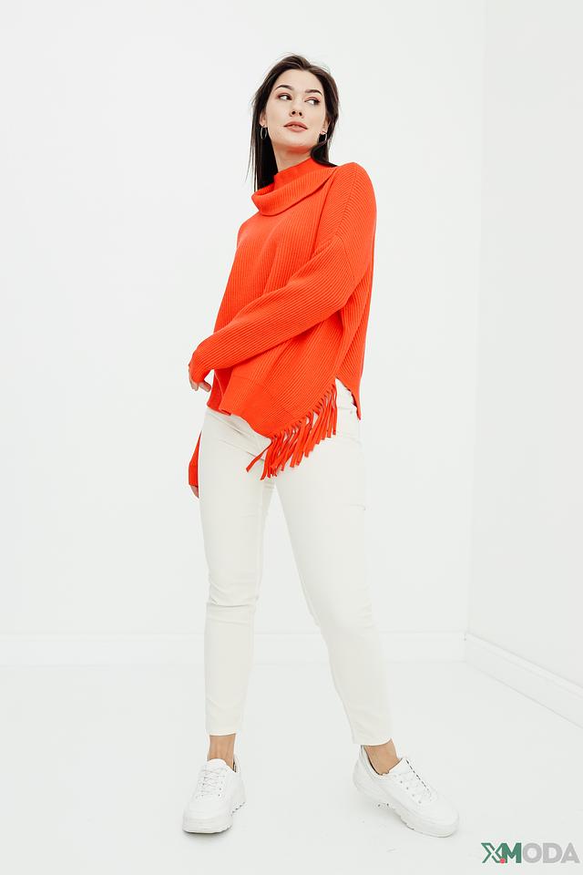 Оранжевый цвет пуловера привлекает внимание и создает позитивное настроение. Свободный крой и слегка завышенная горловина делают его универсальным для различных типов фигур. Оригинальной деталью является бахрома по низу изделия, которая добавляет динамики и индивидуальности.