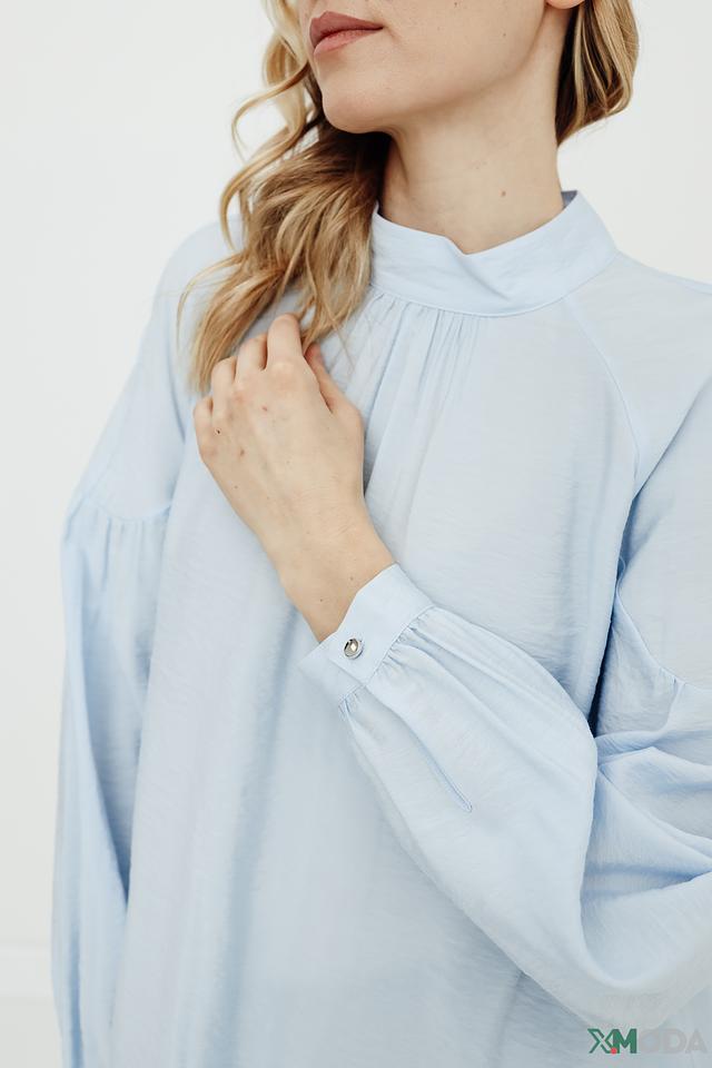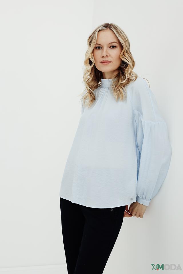 Голубая блуза Taifun из вискозы с рукавами-фонариками станет отличным дополнением к вашему гардеробу. Модель выполнена из лёгкой и приятной к телу ткани, имеет высокий воротник-стойку и аккуратный вырез в задней части. Состав: вискоза 85%, полиамид 15%