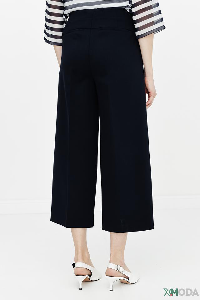 Брюки имеют прямой крой и широкие штанины, что придает им современный и стильный вид. Высокая посадка подчеркивает талию и визуально удлиняет ноги. Изготовлены из качественной ткани, состоящей из 61% вискозы, 35% полиамида и 4% эластана, что обеспечивает комфорт при носке и хорошую посадку по фигуре.