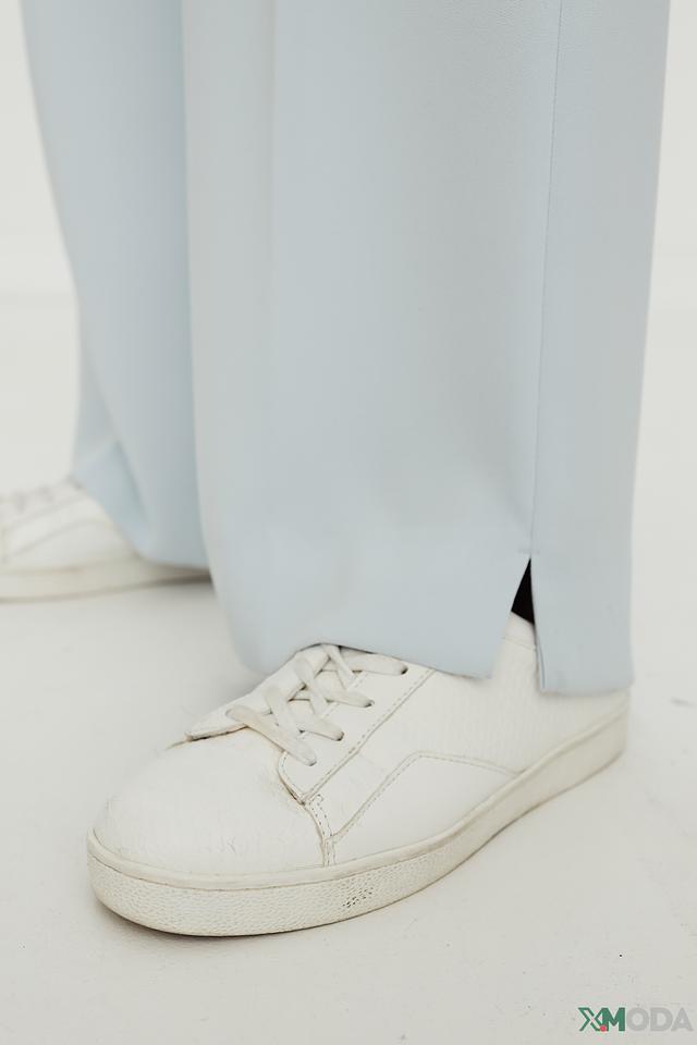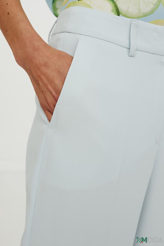 Брюки имеют прямой крой и высокую посадку, что создает элегантный и удлиненный силуэт. Классический дизайн дополнен аккуратными складками, придающими брюкам более изысканный вид.