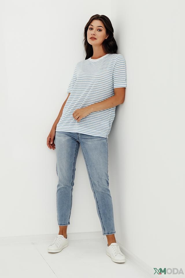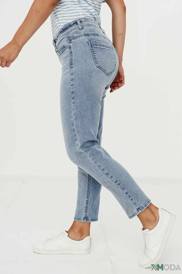 Джинсы имеют прямой крой и высокую посадку, что обеспечивает комфортную посадку по фигуре и подчеркивает достоинства силуэта. Классическое оформление карманов и аккуратные швы делают эти джинсы универсальным элементом гардероба.