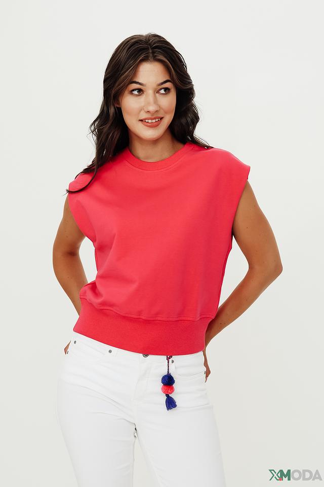 Стильный малиновый топ от Taifun станет ярким акцентом в вашем гардеробе. Изготовленный из мягкого и приятного к телу хлопка с добавлением эластана, он обеспечит комфорт и свободу движений в течение всего дня. Прекрасно сочетается с джинсами, юбками или шортами, создавая множество модных образов. Подходит для повседневной носки и особых случаев. Легко вписывается в любой гардероб.