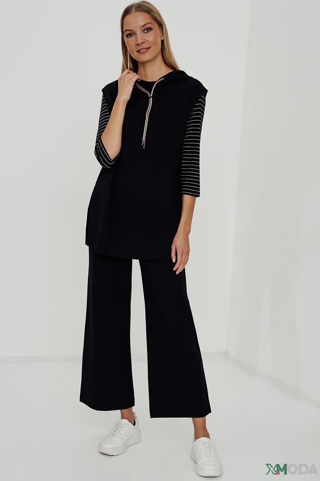 Чёрный жилет Taifun с полосками на рукавах – стильное и удобное решение для создания многослойного образа. Модель выполнена из мягкой вискозы с добавлением полиамида и эластана, обеспечивающих комфорт и свободу движений. Состав: вискоза 69%, полиамид 27%, эластан 4%