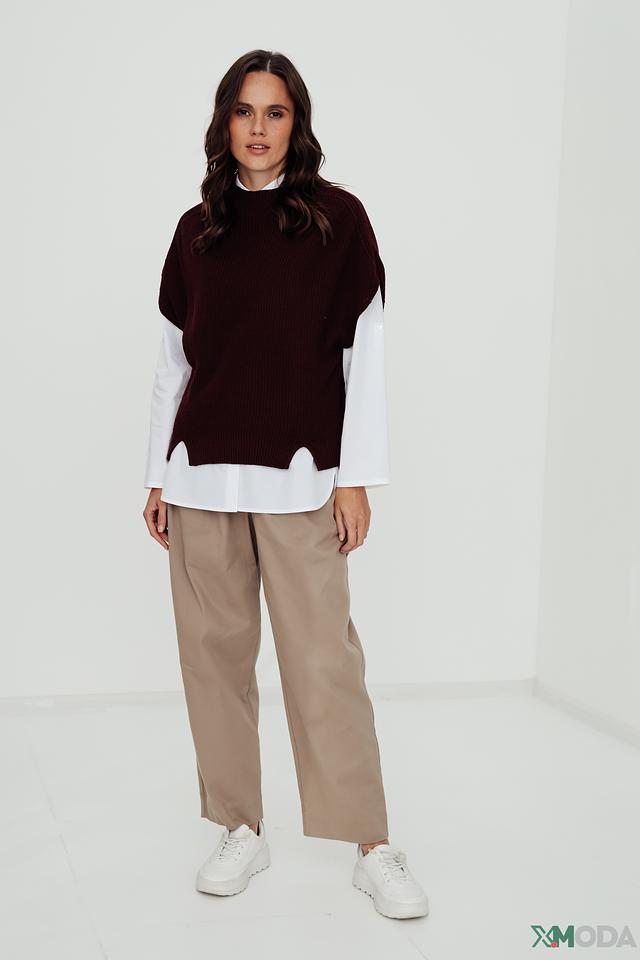 Жилет имеет свободный крой, который не сковывает движений и создает расслабленный силуэт. Оригинальный вырез горловины добавляет образу индивидуальности и стиля. Благодаря своей универсальности, этот жилет станет отличным дополнением к вашему повседневному или вечернему гардеробу.