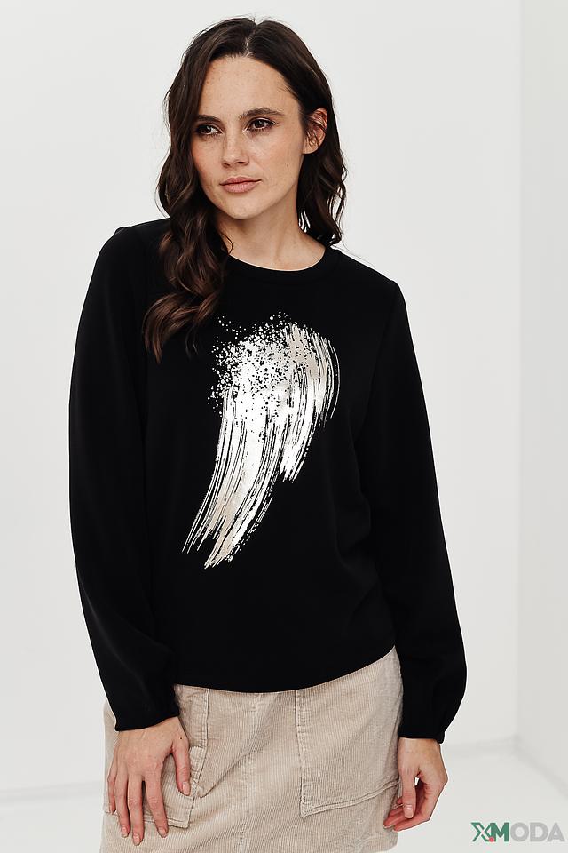 Чёрный пуловер Taifun с оригинальным принтом в виде крыльев станет стильным дополнением к вашему гардеробу. Модель выполнена из мягкого и приятного к телу материала, обеспечивающего комфорт в носке. Состав: модал 48%, полиэстер 47%, эластан 5%