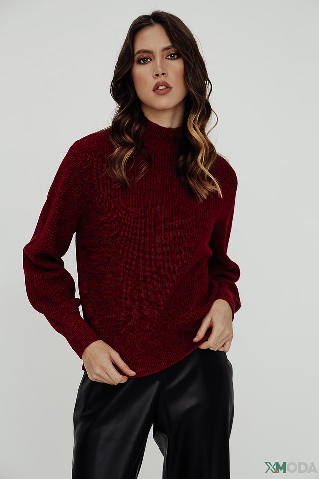 Модель имеет насыщенный винный цвет и свободный крой, который не сковывает движения. Рукава-фонарики добавляют образу романтичности и оригинальности.
