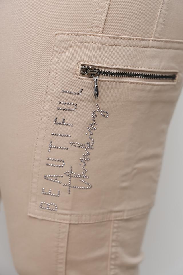 Особый акцент в дизайне брюк – декоративная вышивка с надписью "BEAUTIFUL" на кармане. Это придает модели индивидуальность и стиль. Брюки застегиваются на молнию и пуговицу, имеют функциональные карманы спереди и сзади. Они идеально подойдут для повседневной носки, прогулок и встреч с друзьями.