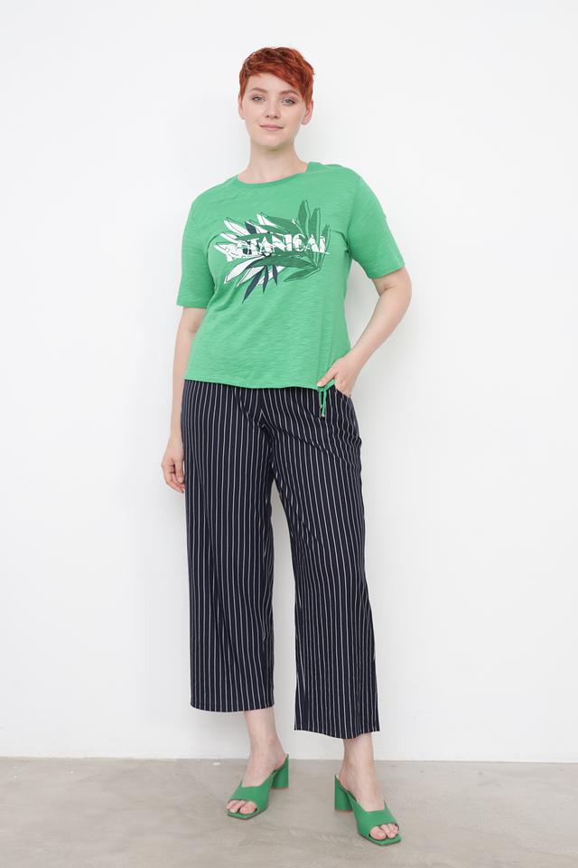 Зелёная футболка Thomas Rabe с оригинальным растительным принтом станет отличным дополнением к вашему образу. Модель выполнена из мягкой и приятной к телу ткани, обеспечивающей комфорт в течение дня. Состав: вискоза 50%, хлопок 50%