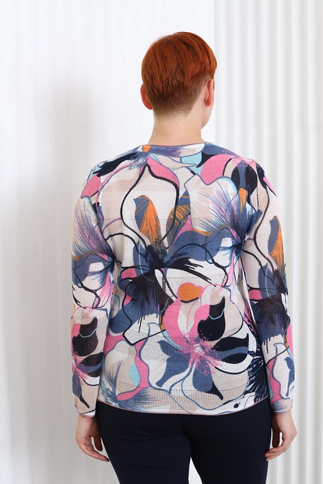 Этот женский пуловер от Thomas Rabe – идеальный выбор для создания комфортного и стильного образа. Пуловер выполнен в нежно-розовой цветовой гамме и украшен ярким, красочным цветочным принтом, который добавляет изделию женственности и оригинальности.