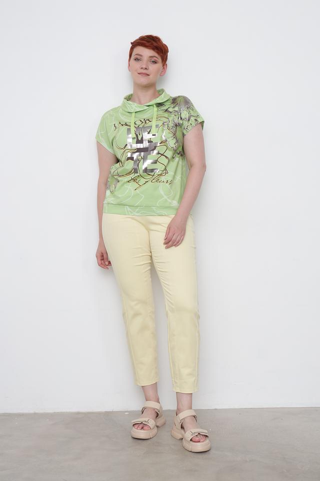 Женская футболка Thomas Rabe лаймового цвета с оригинальным принтом и короткими рукавами. Модель выполнена из мягкого и приятного к телу сочетания хлопка, модала и эластана, обеспечивающего комфорт при носке. Состав: хлопок 48%, модал 48%, эластан 4%