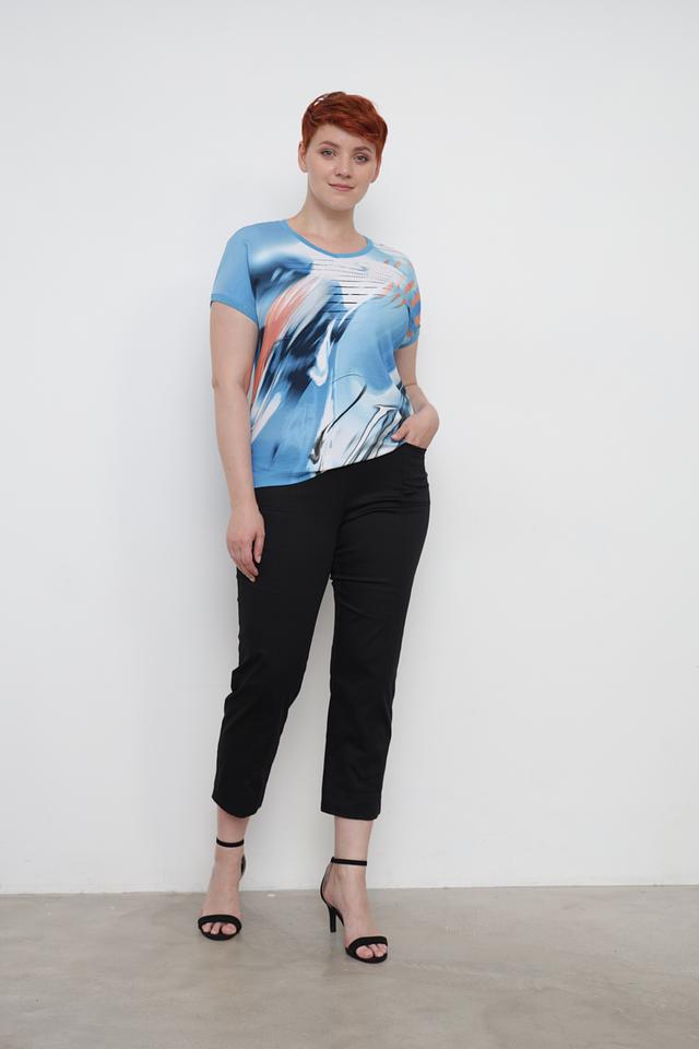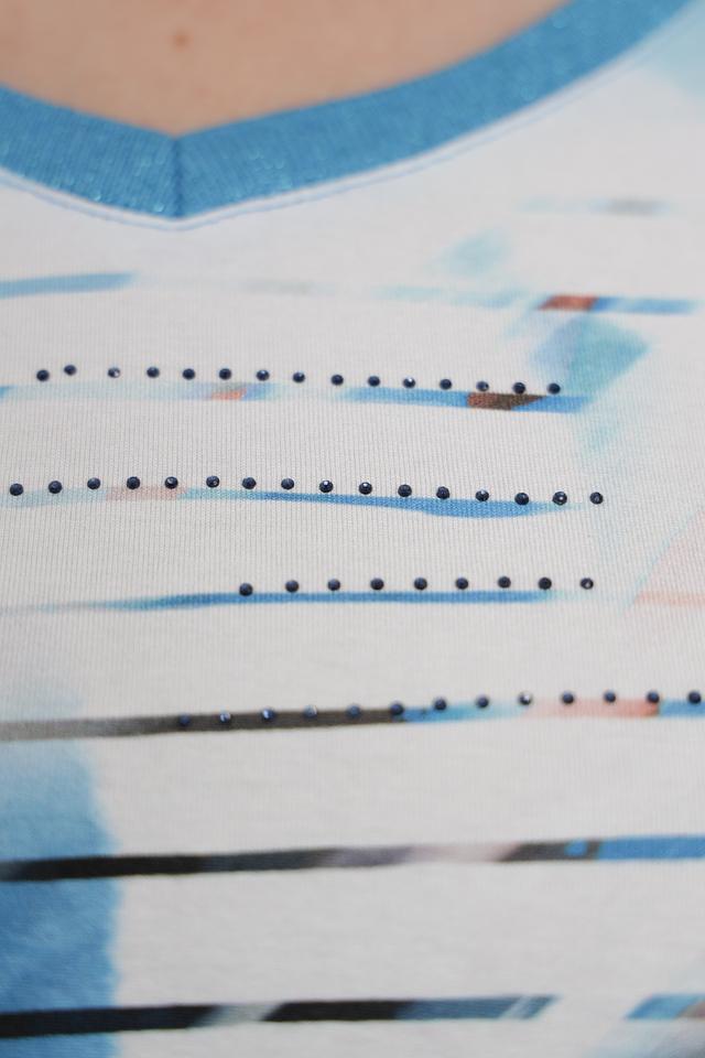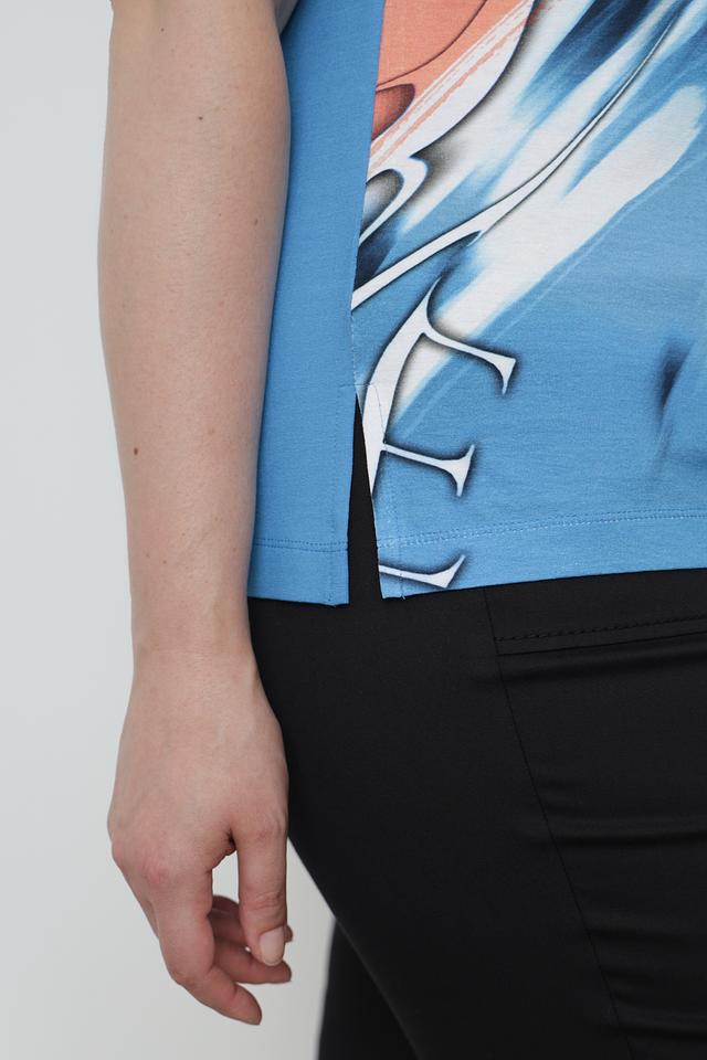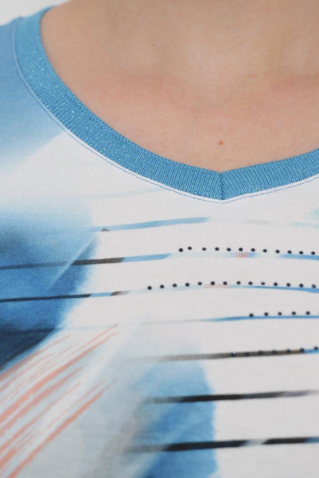 Женская футболка Thomas Rabe голубого цвета с абстрактным принтом. Модель выполнена из мягкой вискозы с добавлением эластана, обеспечивающего комфортную посадку. Футболка станет отличным дополнением к вашему повседневному гардеробу. Состав: вискоза 92%, эластан 8%